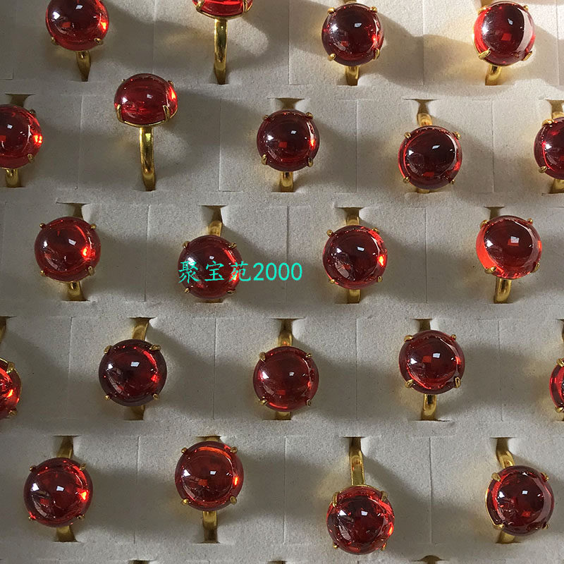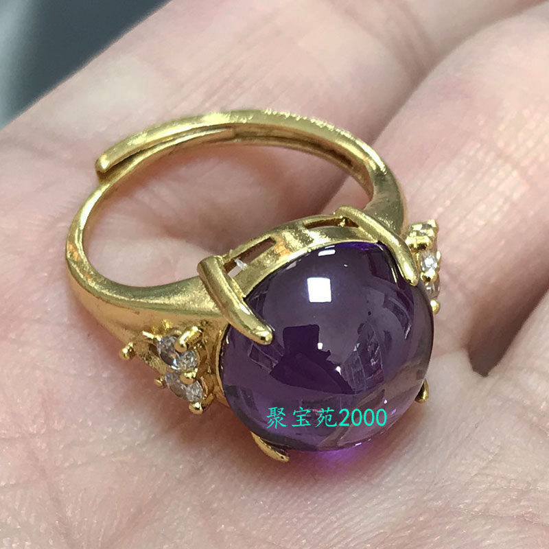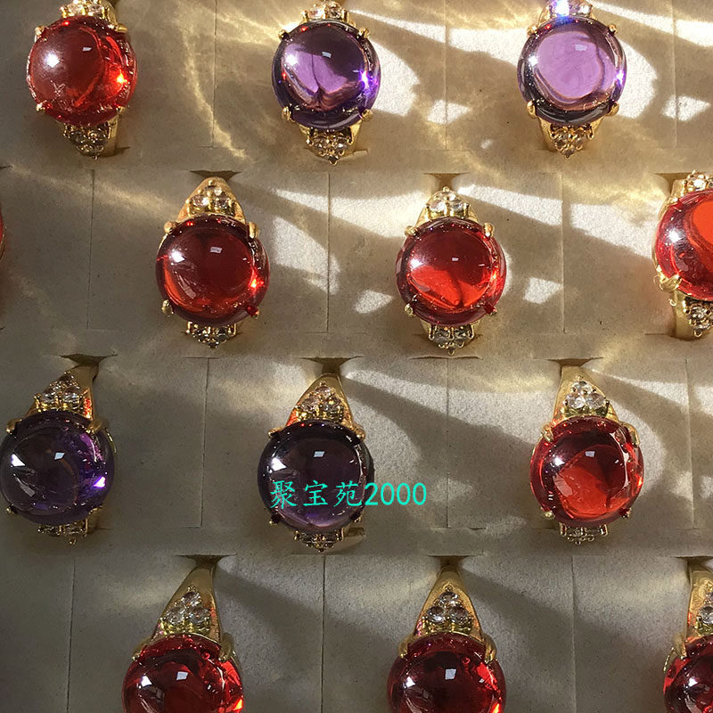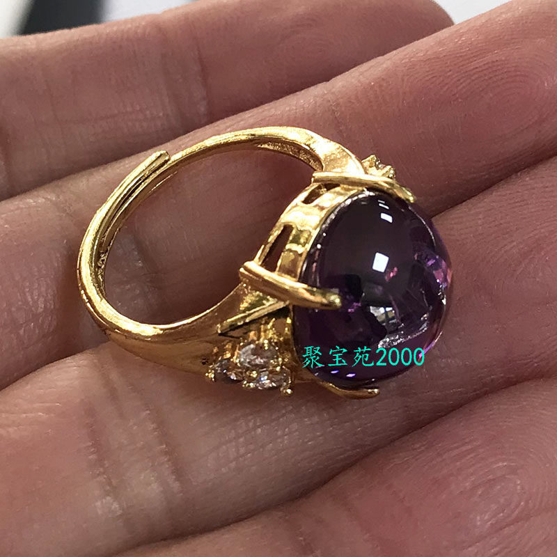 天然锆石戒指红宝石女戒紫水晶镶嵌活口调节戒圈锆石蛋面简约指环