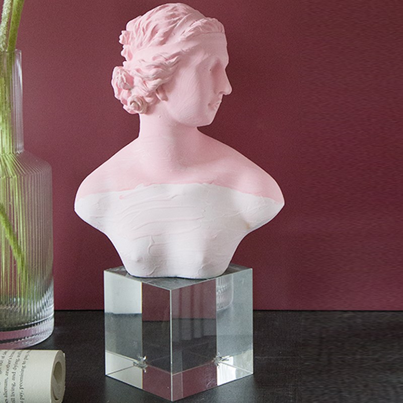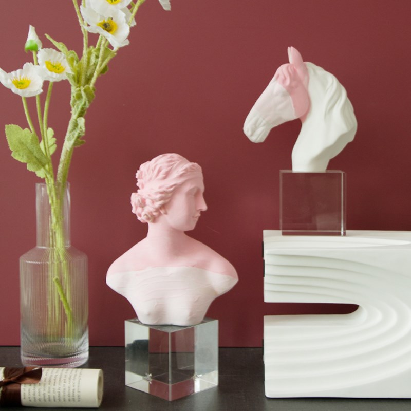 渐变粉淡红色马头水晶摆件桌面艺术人物雕塑雕像橱窗高级感装饰品