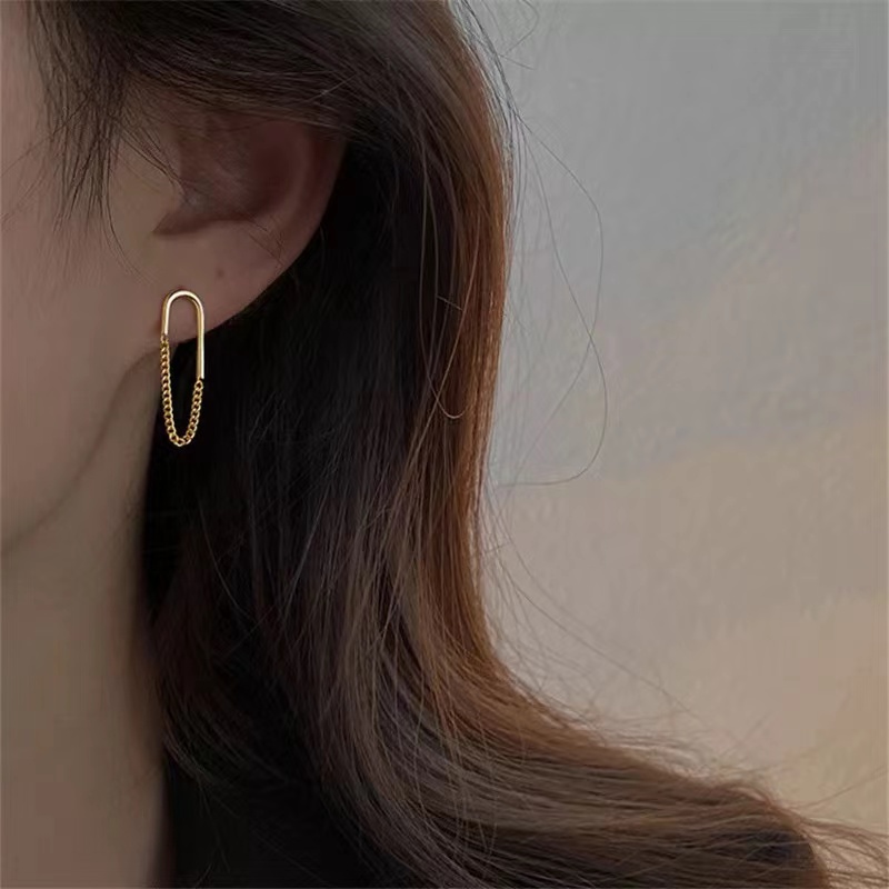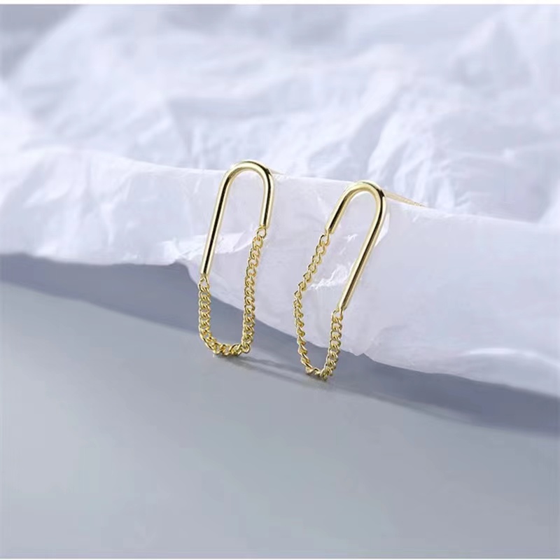 New Simple Geometric Tassel Chain Stud Earrings Women's