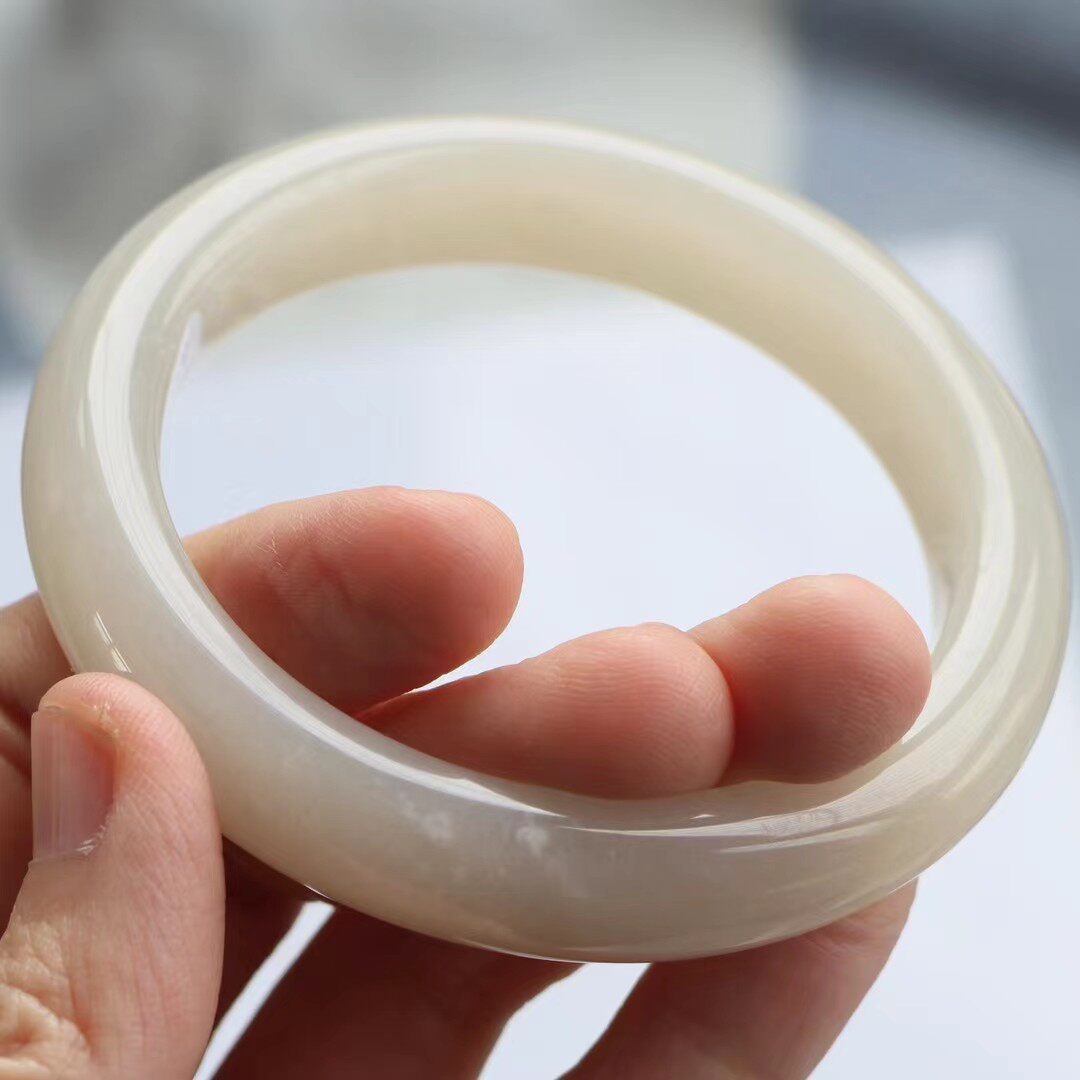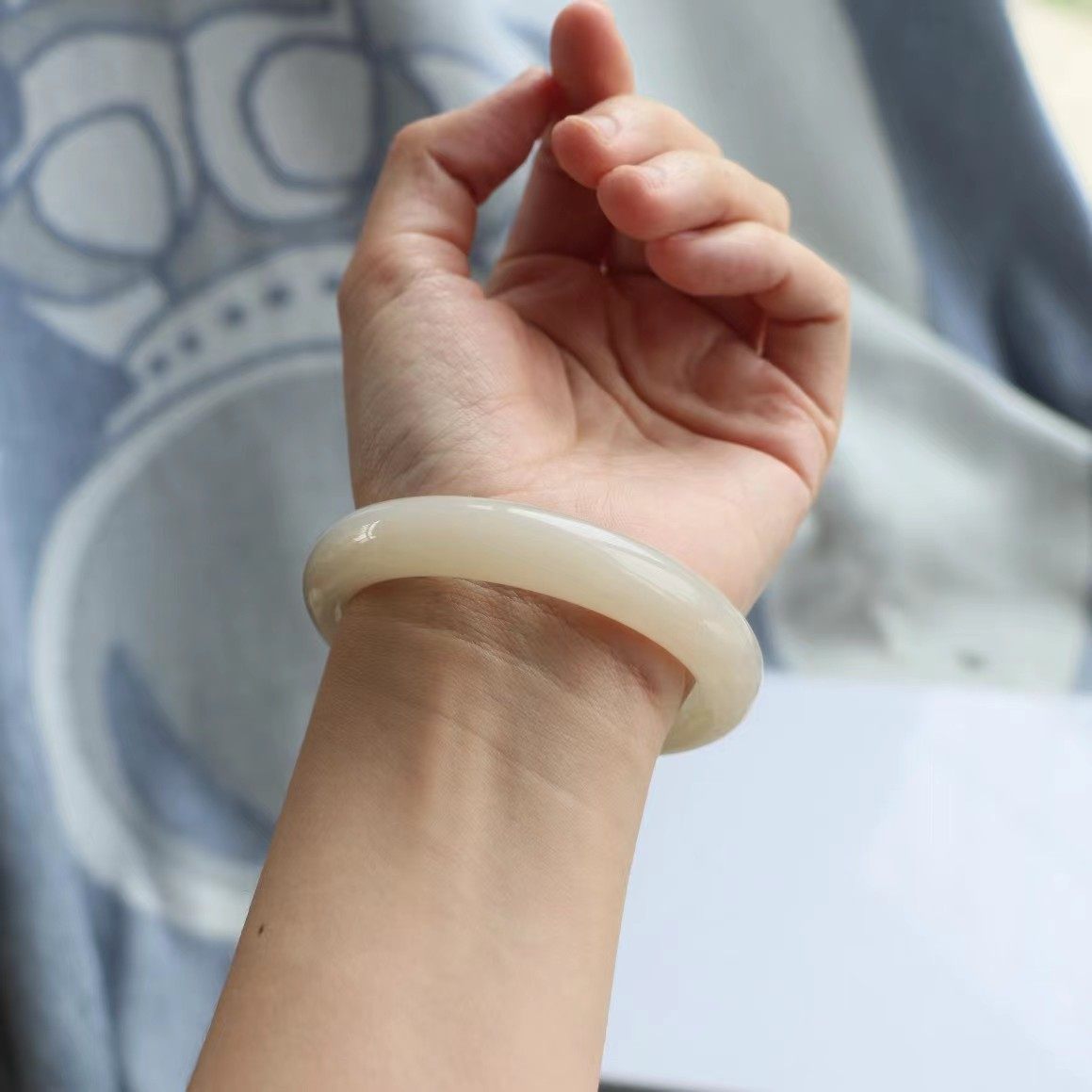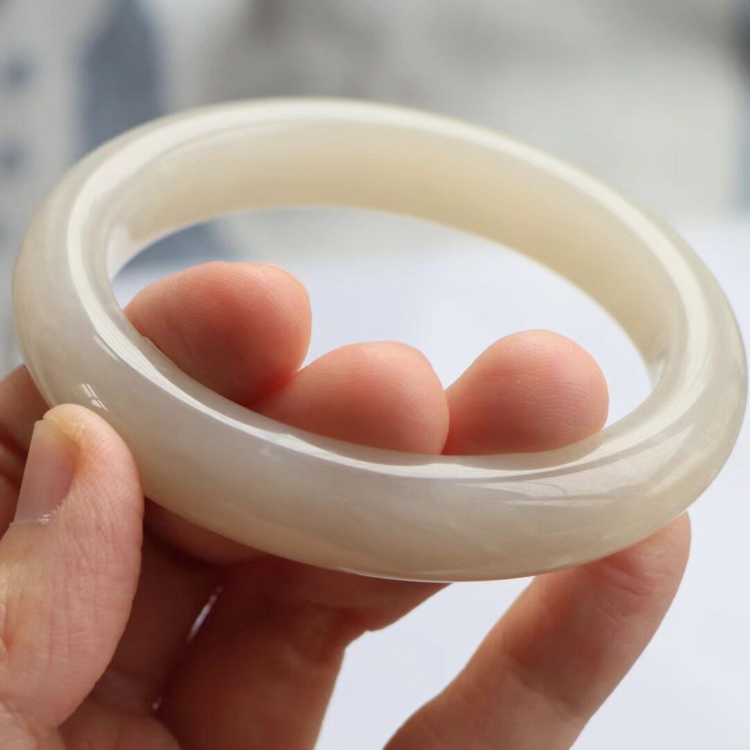保真天然和田玉手镯58圈口证书编号8131882和田玉藕粉色 青海料