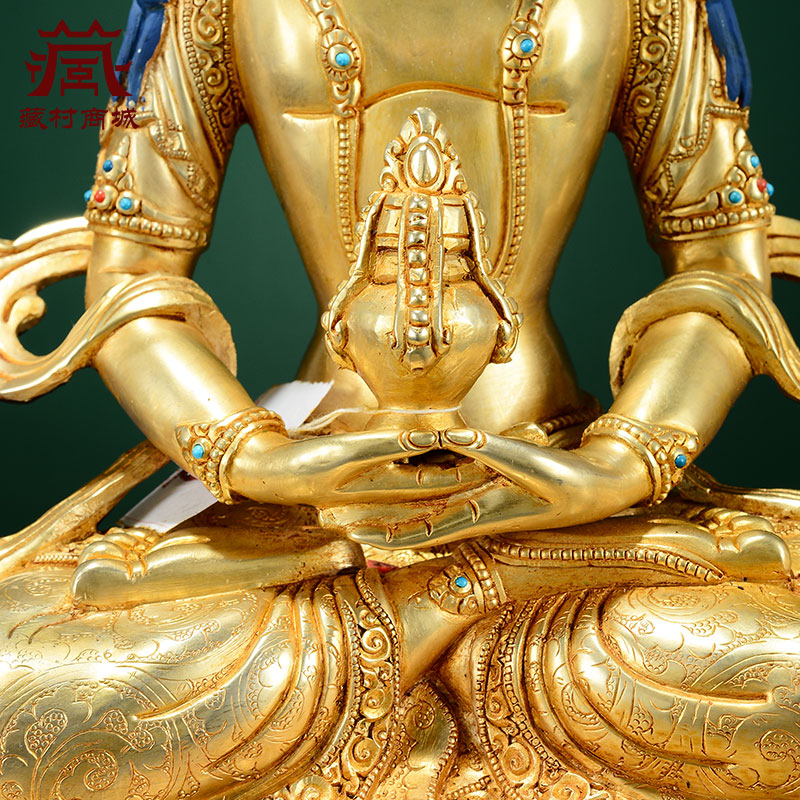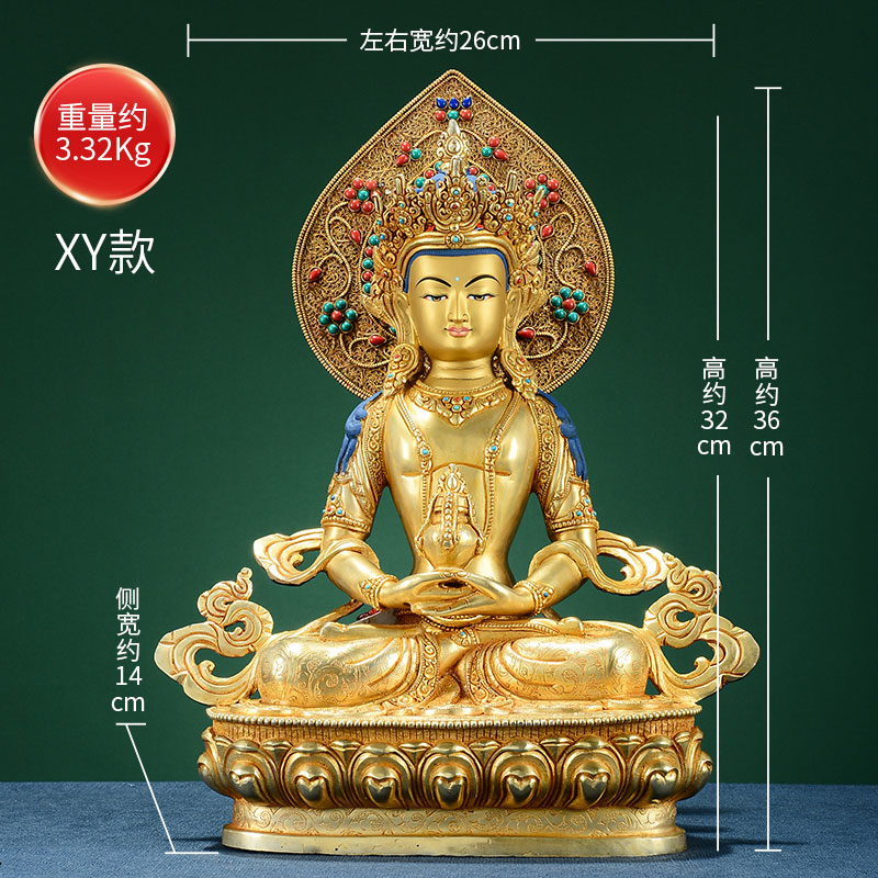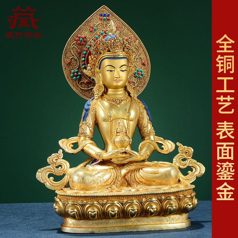 全鎏金《常寿佛》尼泊尔手工雕花室内《长寿佛》铜像带背光摆件