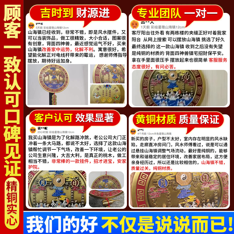 全铜山海镇室外挂件室内摆件黄铜太极图的作用家用大门口八卦凸镜