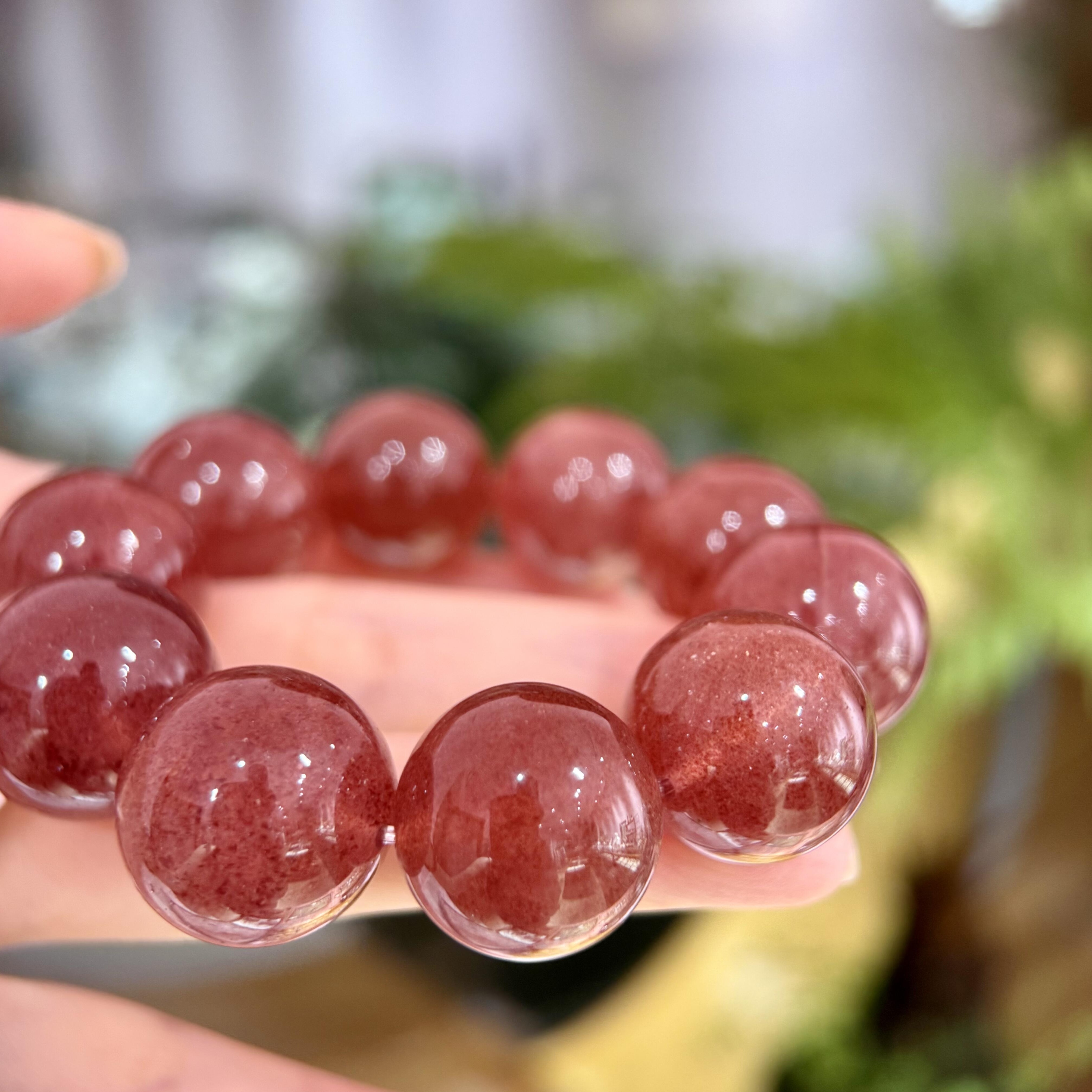 天然车厘子色大颗粒收藏级草莓晶手串精品大尺寸水晶手链批发拿货
