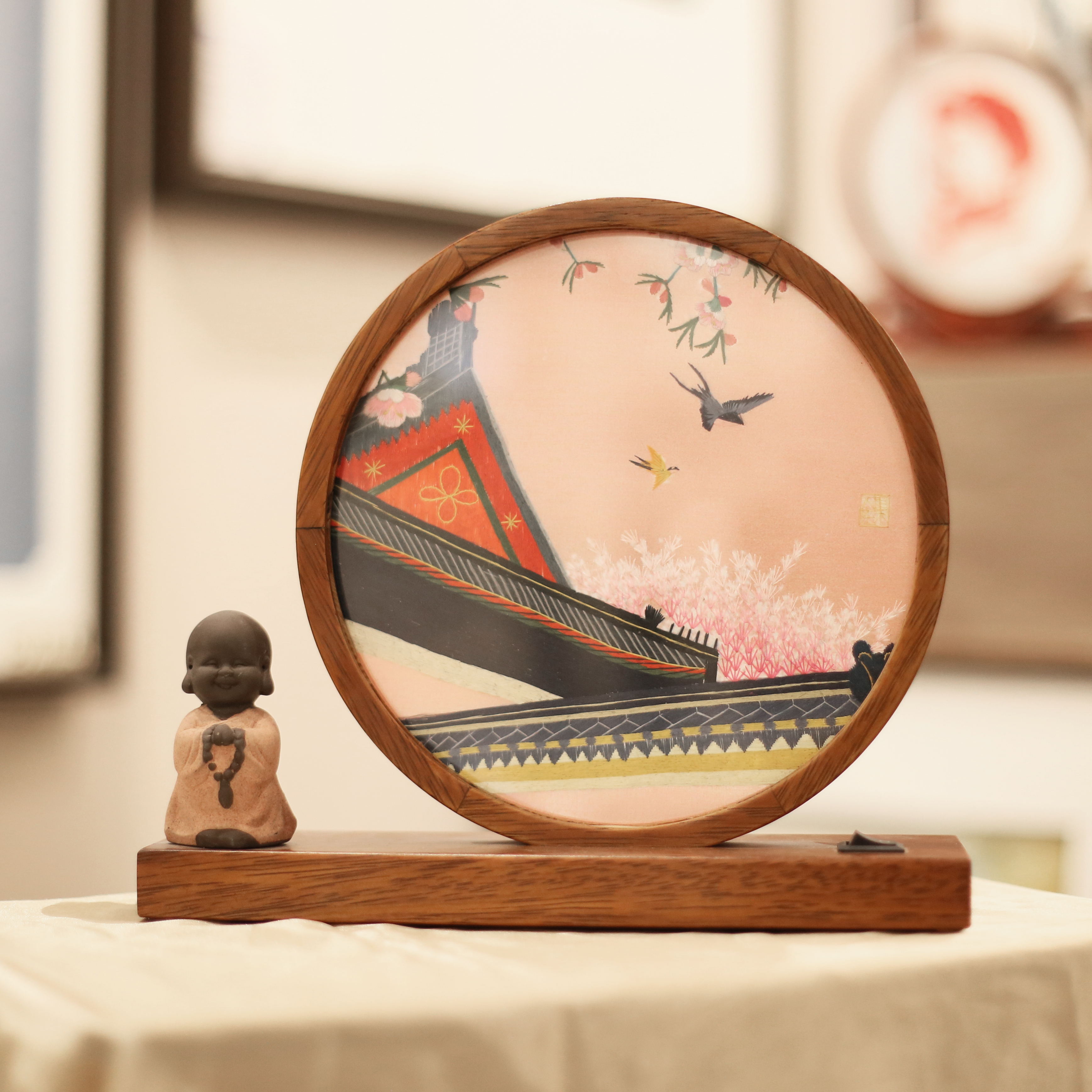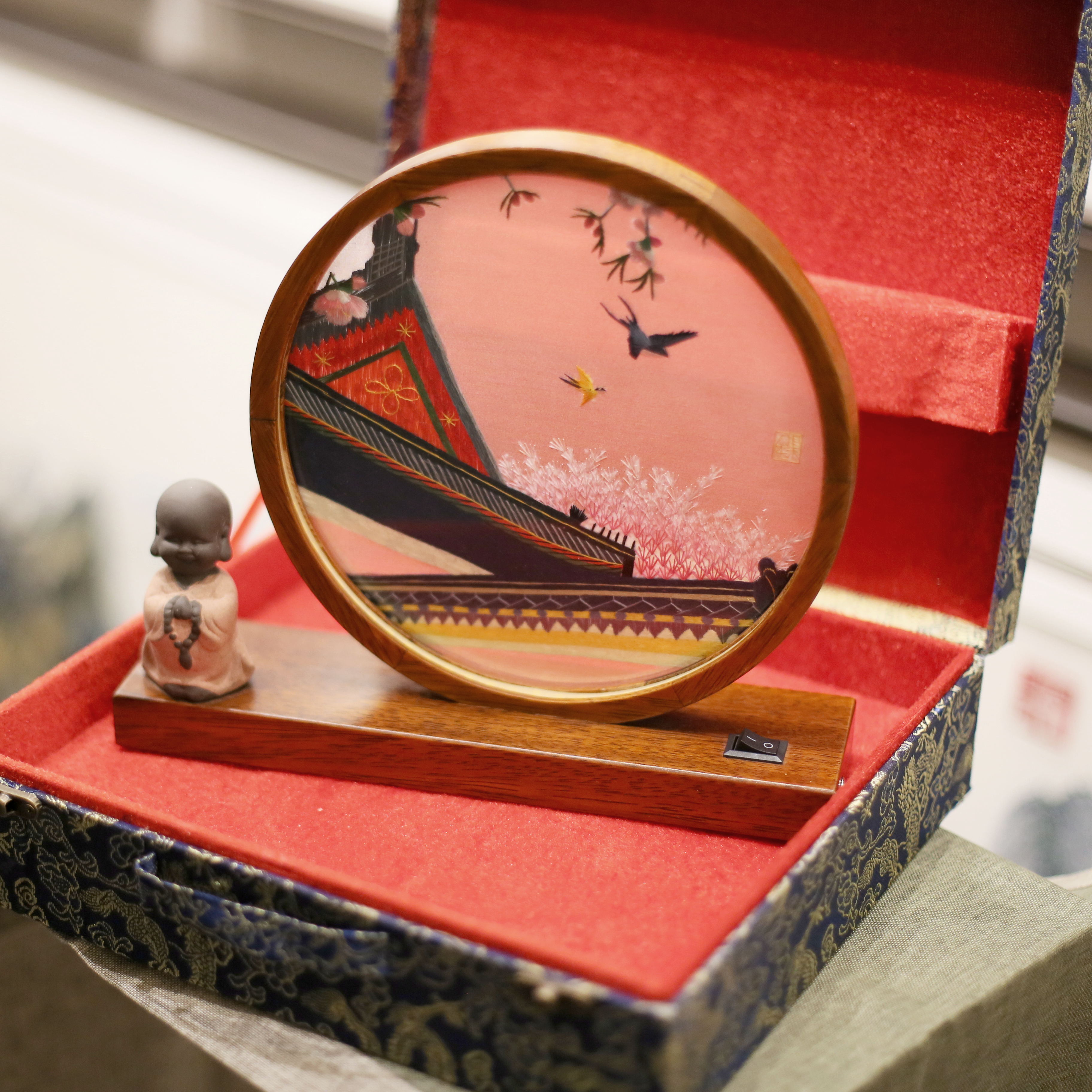 湘绣台屏摆件非蜀绣苏绣纯手工刺绣双面绣花梨木台灯湖南特产礼品