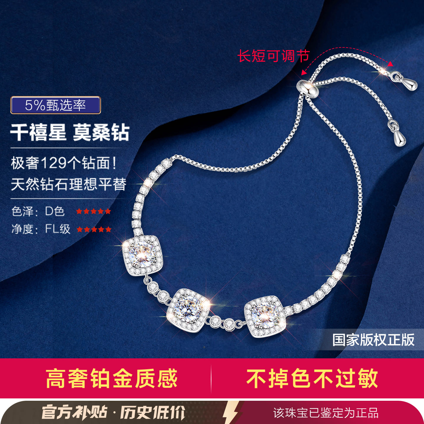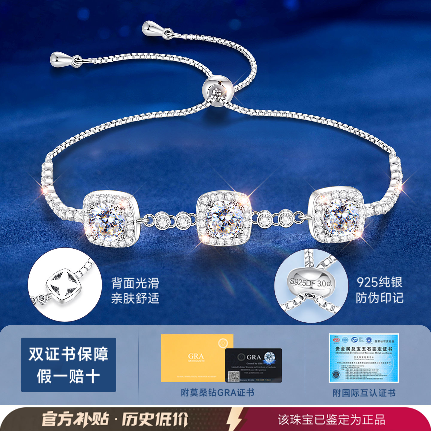 纯银莫桑石莫桑钻爆闪方糖银手链女款2025新款女生女士生日礼物女