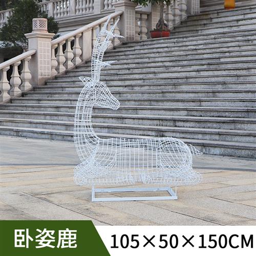 户外不锈钢镂空梅花鹿雕塑园林景观小区草坪铁艺蝴蝶发光落地摆件