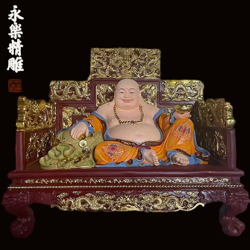 弥勒佛佛像树脂玻璃钢雕塑摆件汽车漆彩绘极彩纯手工铜雕脱胎