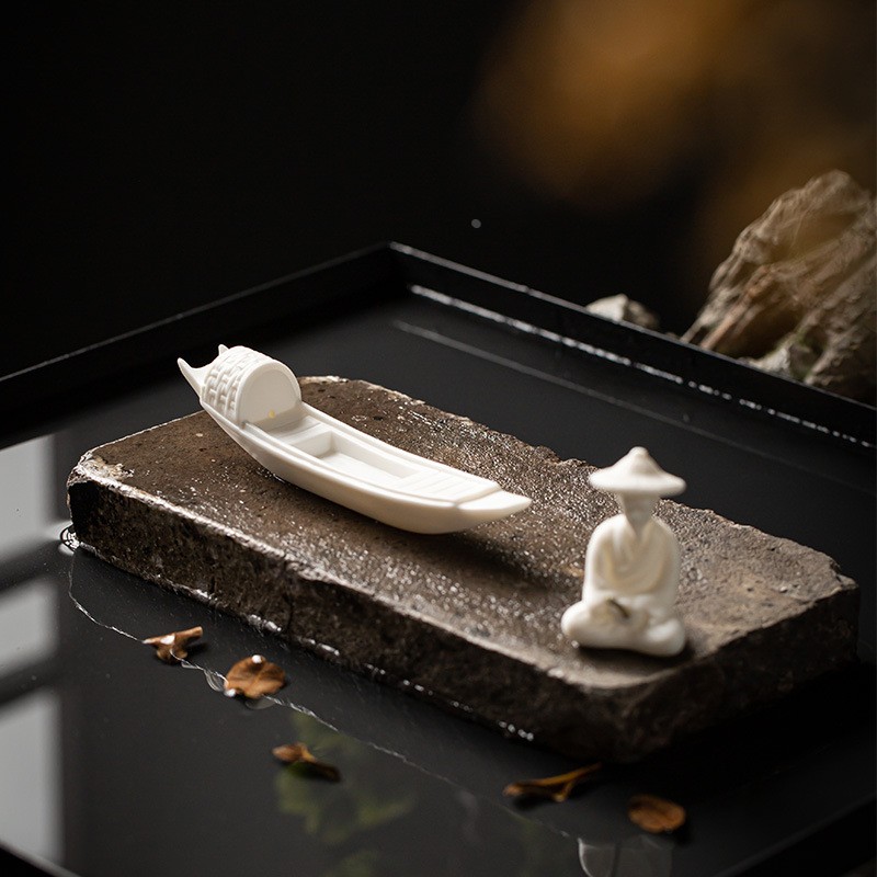 陶瓷小船摆件古代渔船微景观造景摆设桌面假山流水鱼缸盆景装定制