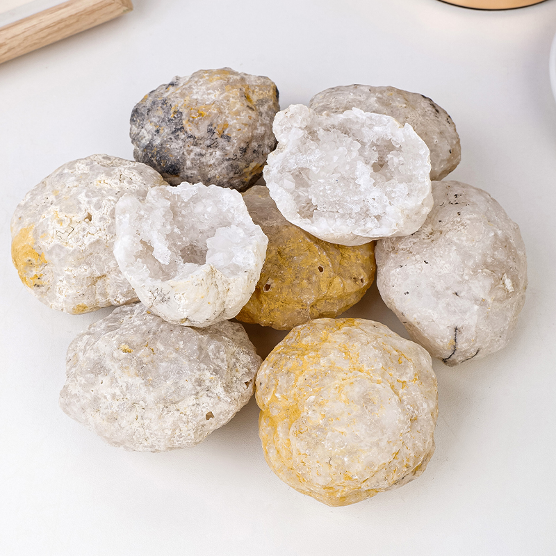 天然水晶空心玛瑙晶洞球 白水晶洞矿石标本迷你聚宝盆摆件