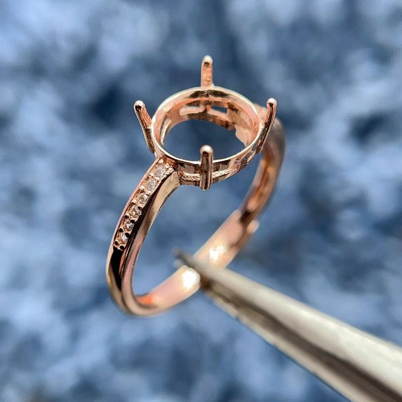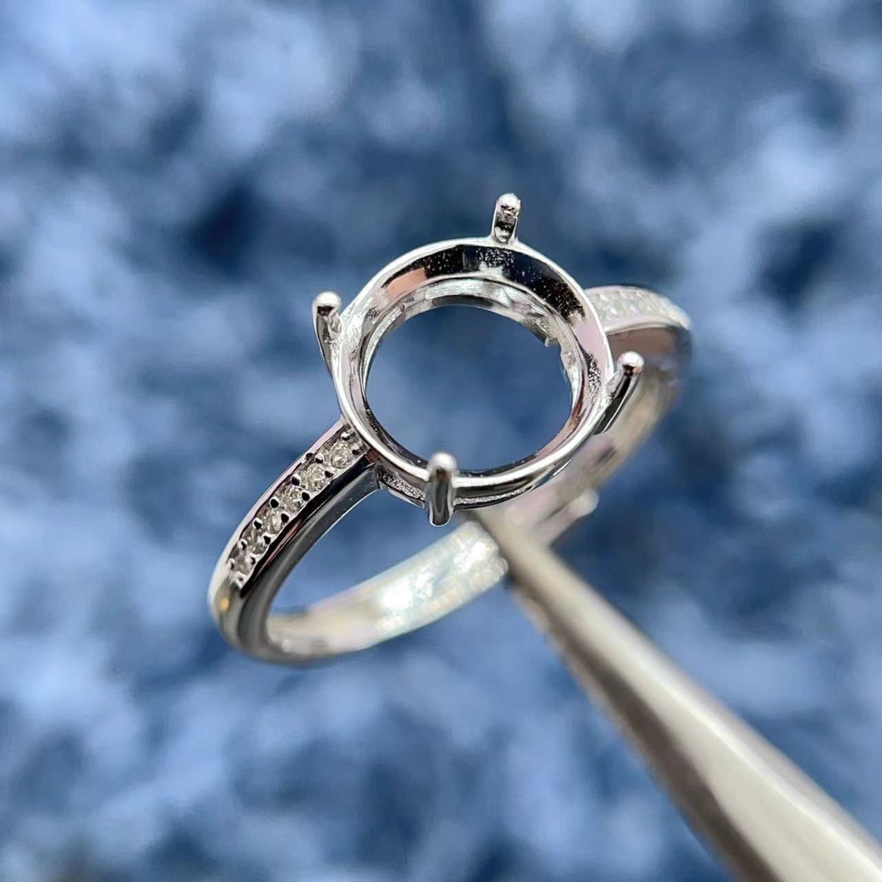 S925纯银戒指空托圆形多尺寸可定制简单百搭时尚小众简约精致饰品