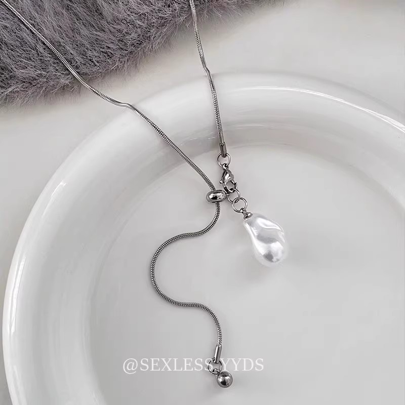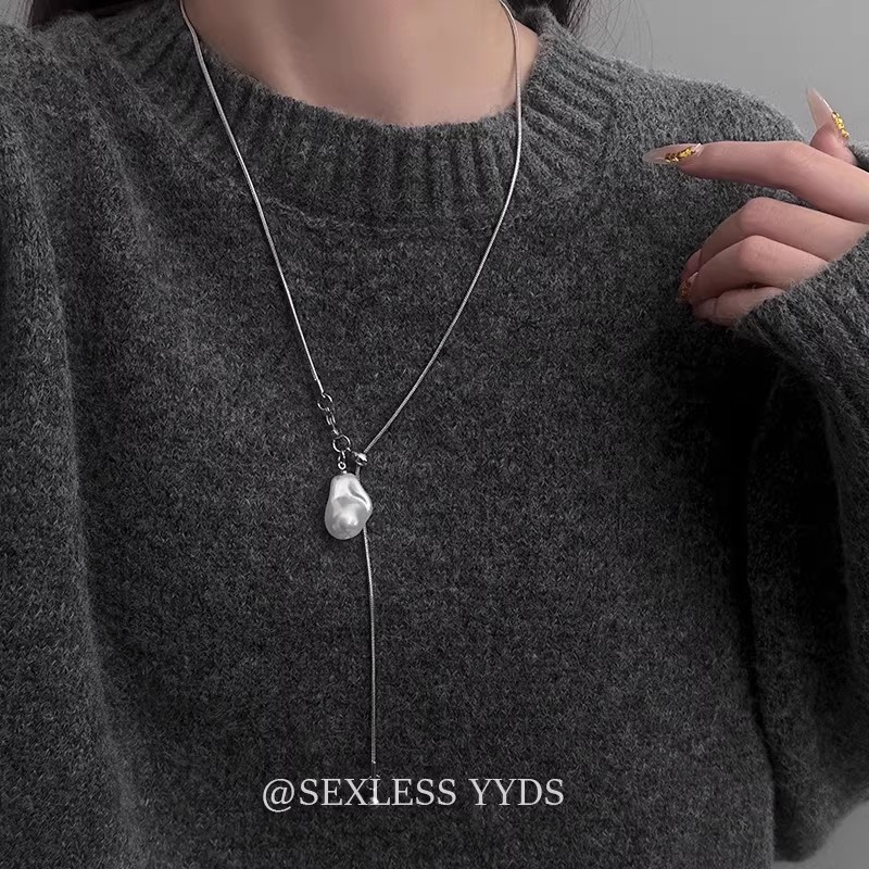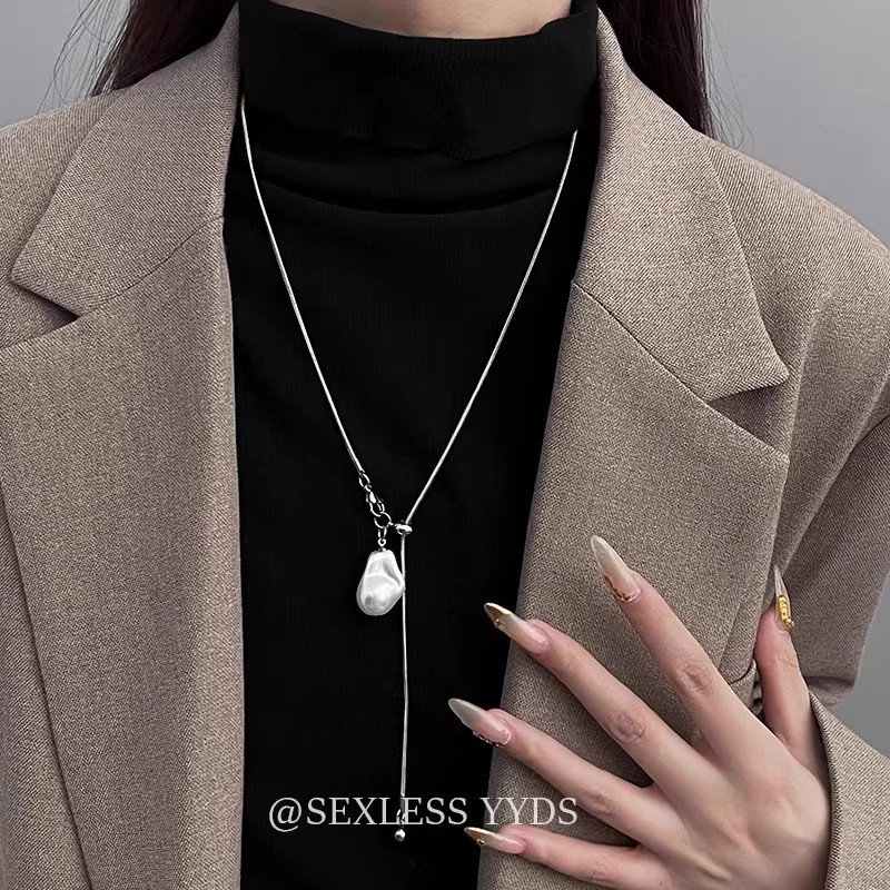 长款抽拉巴洛克珍珠项链女轻奢高级感颈链可调节秋冬毛衣链