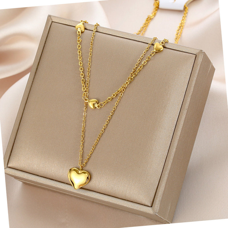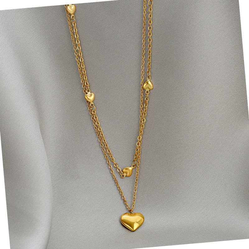 新款高级感金色爱心钛钢项链女简约气质双层锁骨链小众设计轻奢