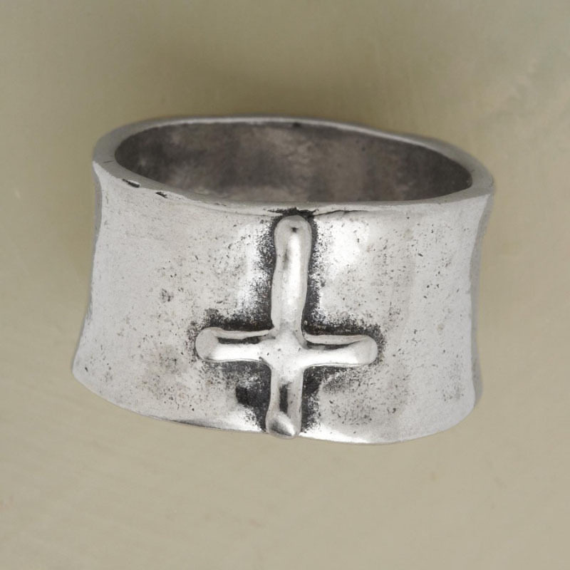 海饶2024temu热销银色宽面戒圈复古十字架造型流行饰品男女通用