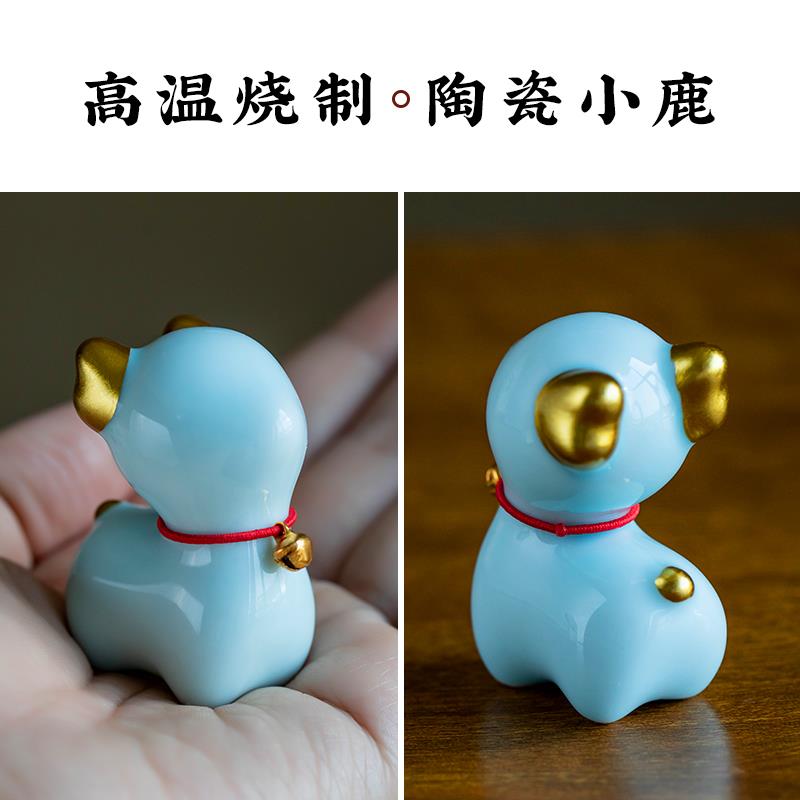 可爱小鹿治愈系汽车摆件车内饰品陶瓷可爱家居茶宠摆件桌面工艺品