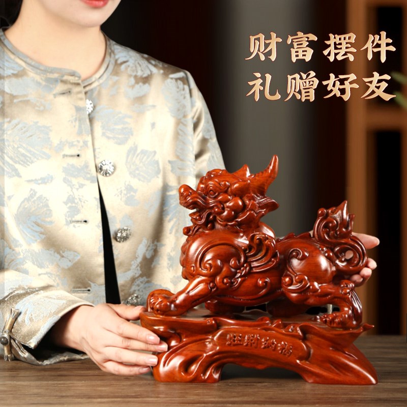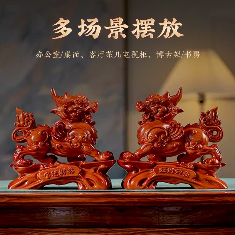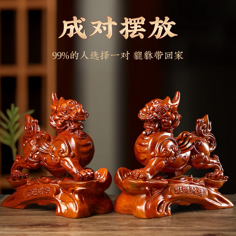 极速铁梨木貔貅摆件一对客厅皮丘家用F客厅店铺办公室装饰开业礼