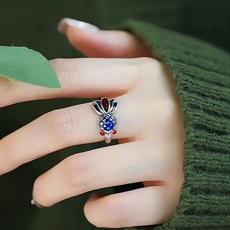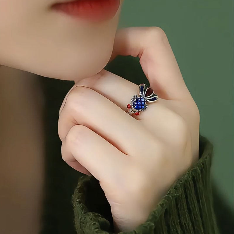 925银珐琅彩锦鲤戒指女新中式小众设计复古高级感活口国风食指戒