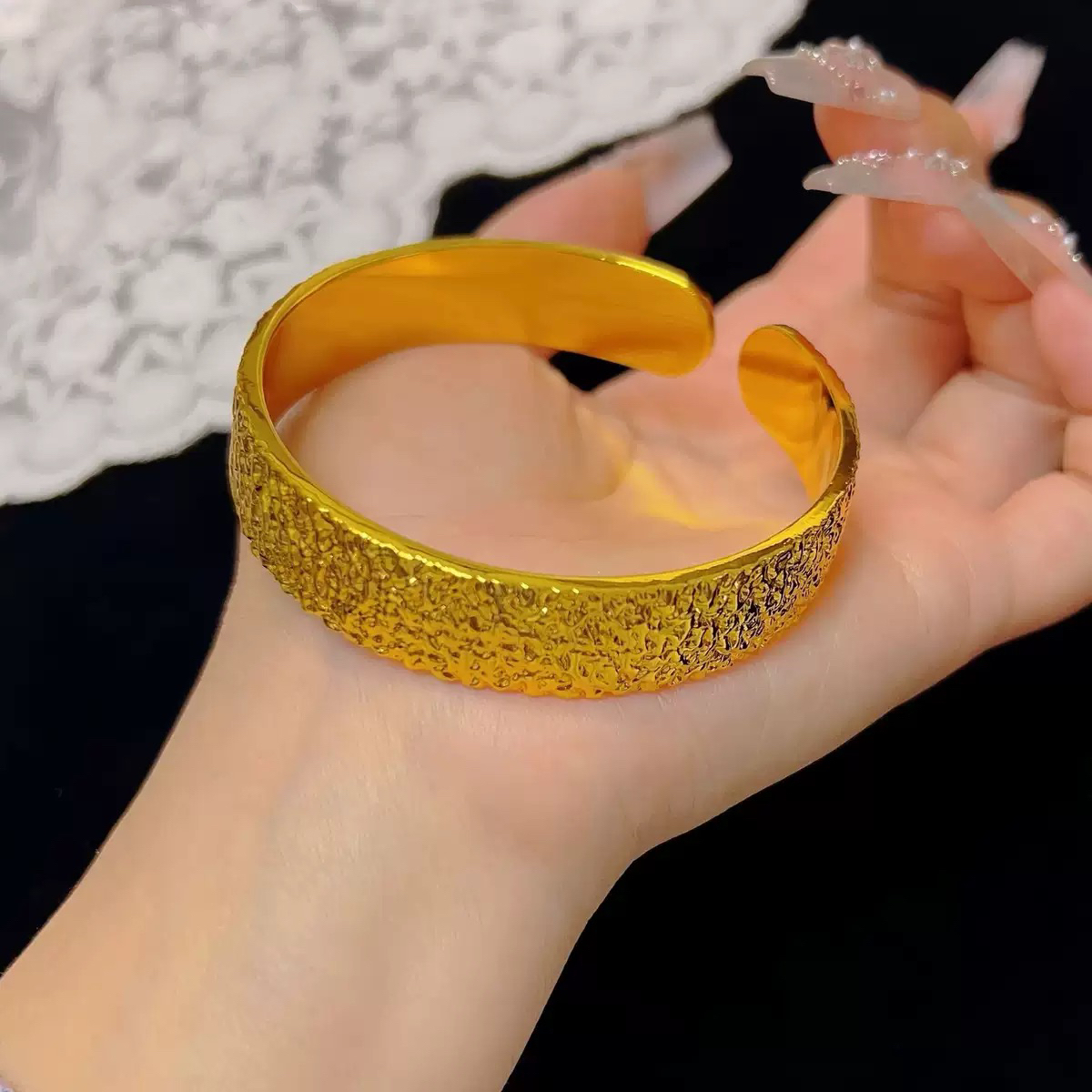 宽版碎冰冰沙金手镯仿真黄金色金店同款女大克重开口宽面久不掉色
