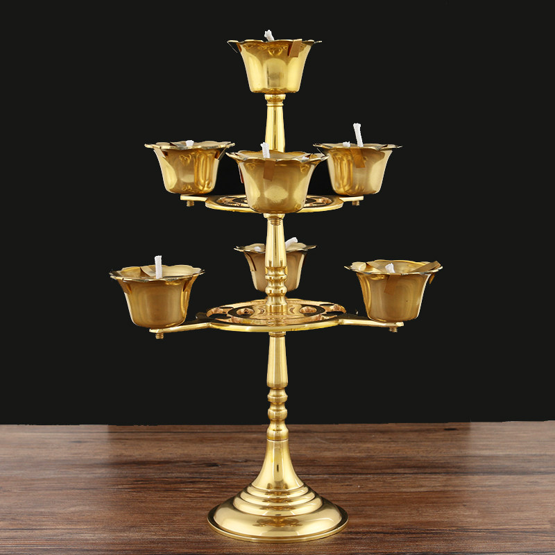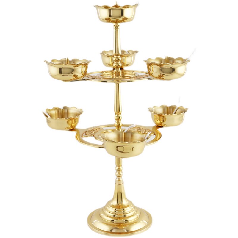 纯铜供佛油灯铜钱七星灯莲花灯家用供灯佛堂寺庙佛前长明灯酥油灯