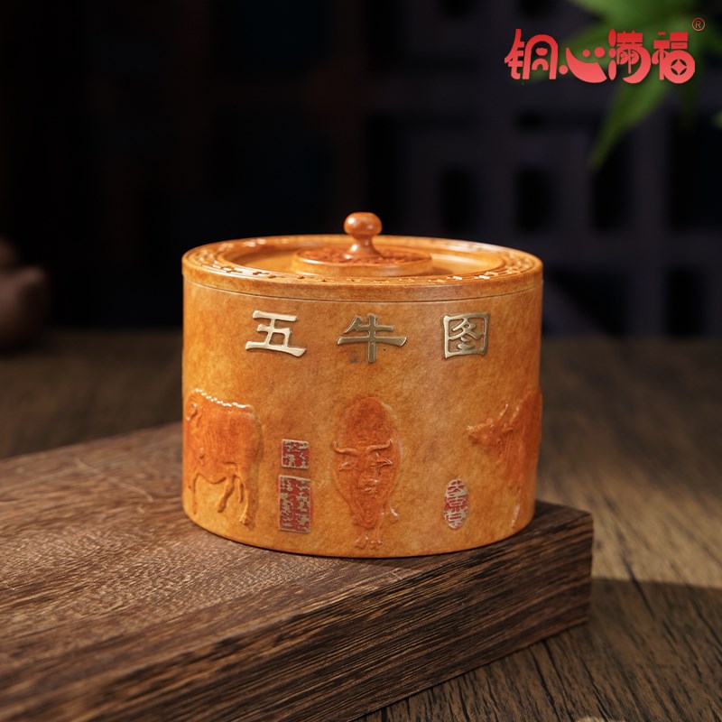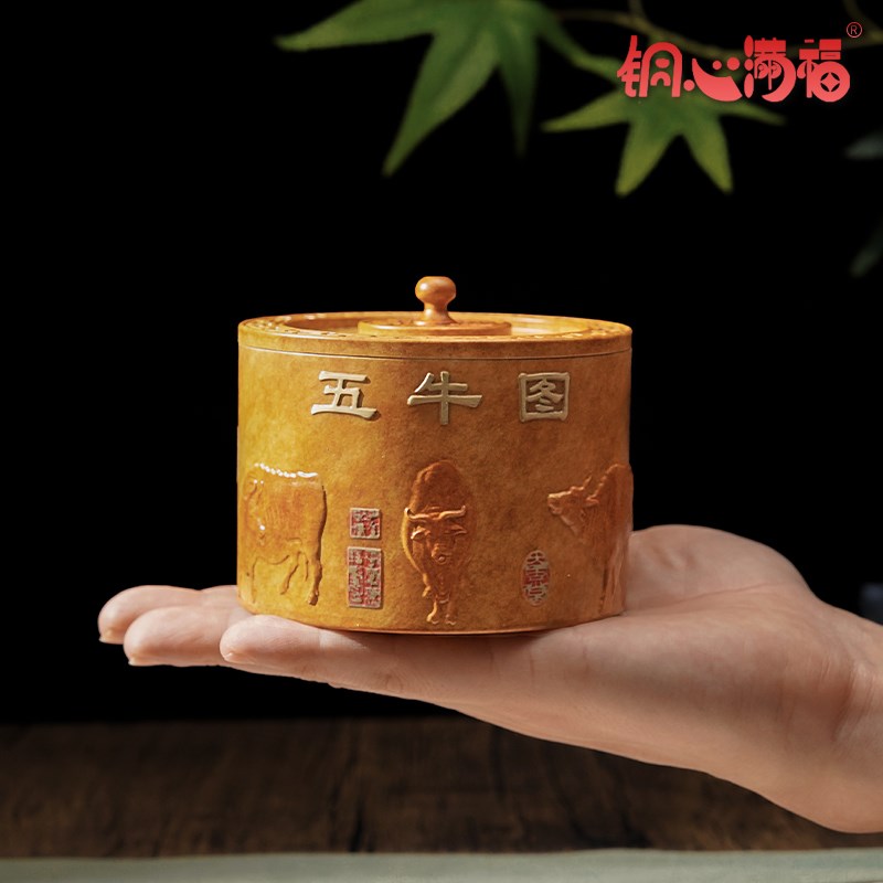黄铜五牛纳福客厅铜烟灰缸家居工艺品实J用创意中式礼品办公桌摆