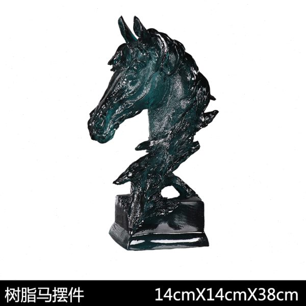 新中式后现代蓝色马头树脂摆件酒店别墅展厅玄关桌面软装饰品摆设