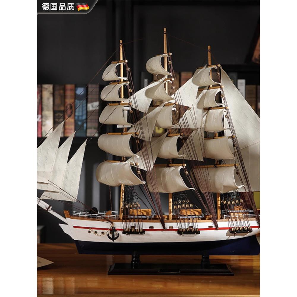 德国实木大型帆船模型工艺品装饰品客厅陈设婚礼礼品顺利航行装饰