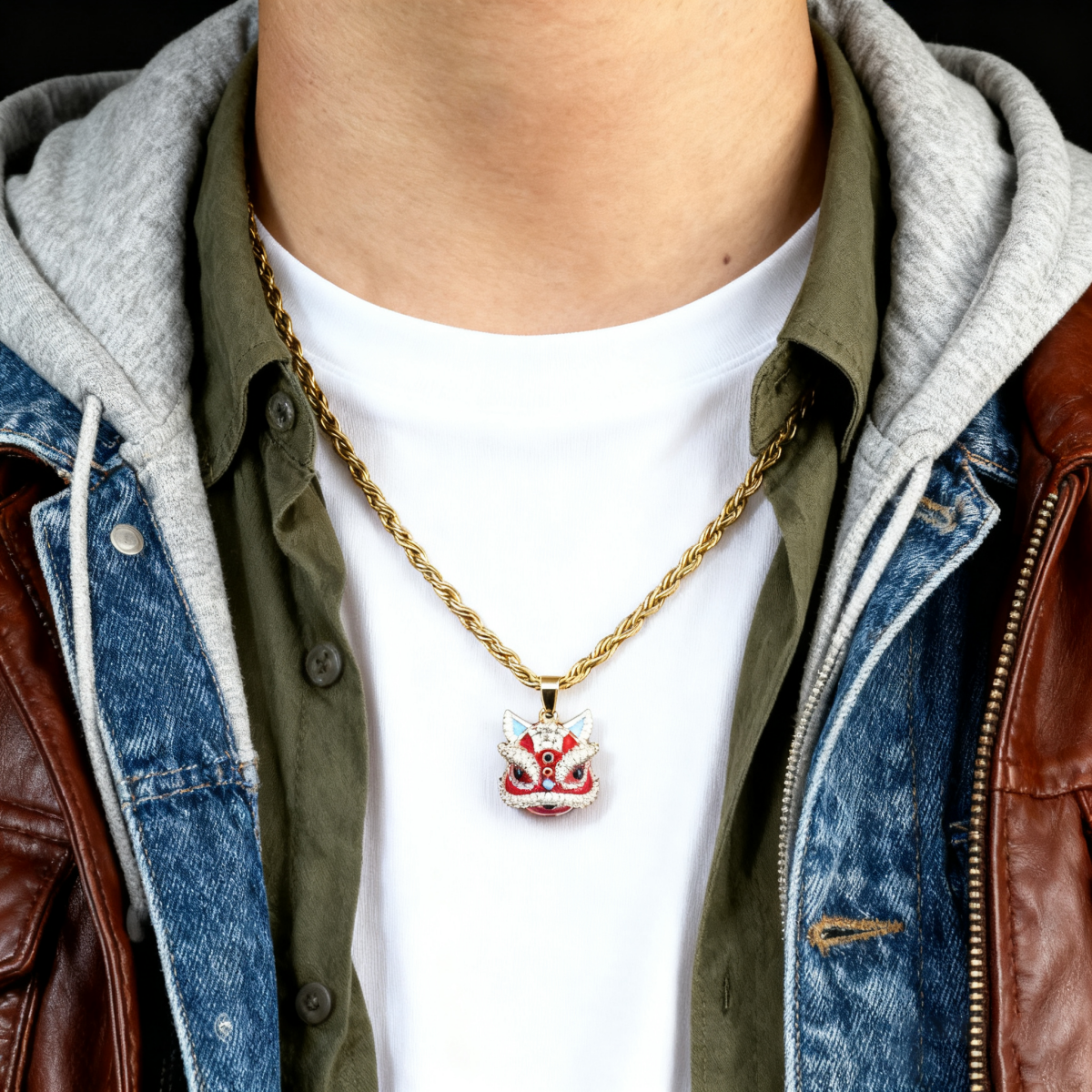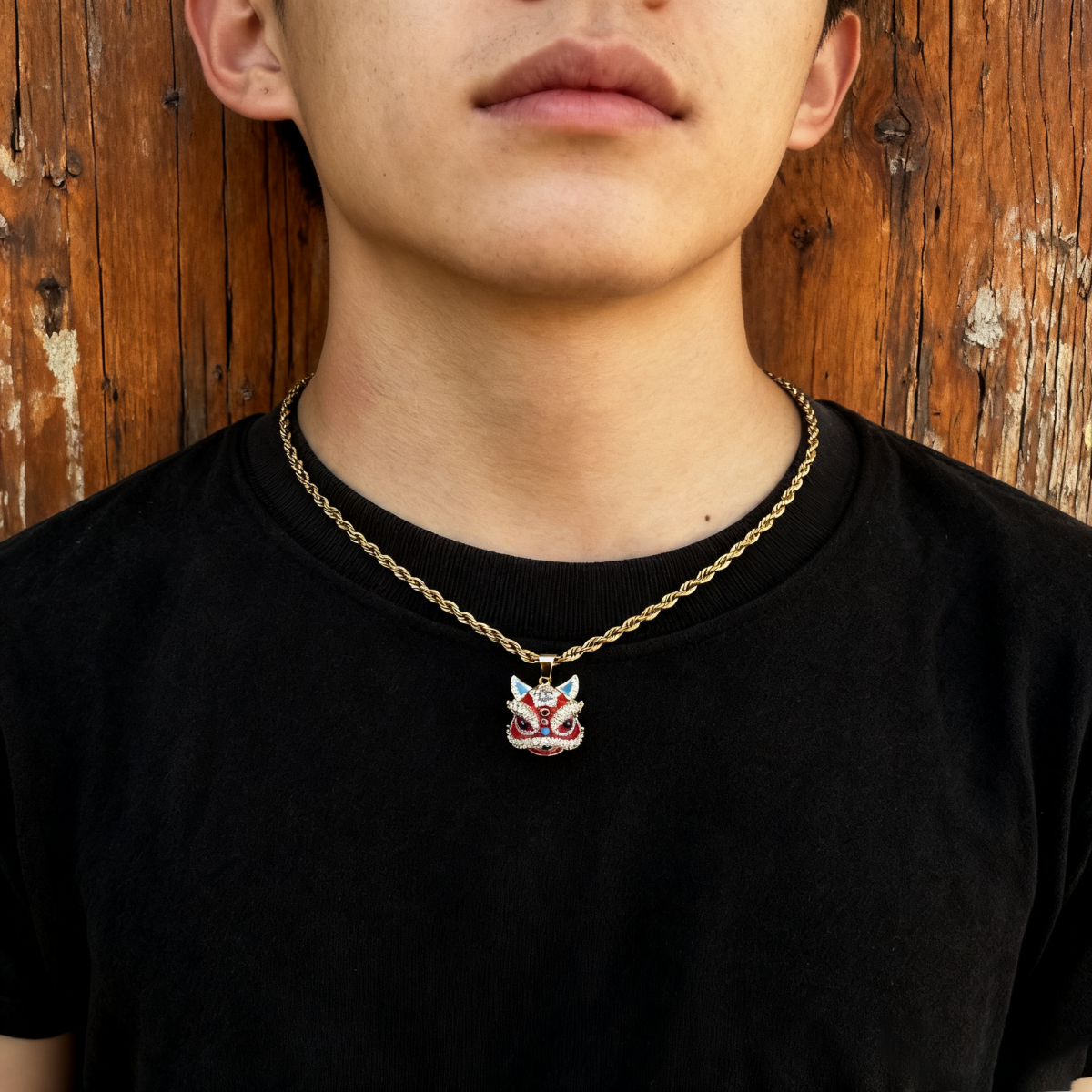 宣宁重工设计红色醒狮镶嵌吊坠麻花链小众高级感男女配饰ins