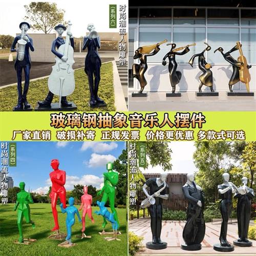 玻璃钢抽象音乐人物雕塑售楼处酒店小区乐队摆件户外商场提琴装饰