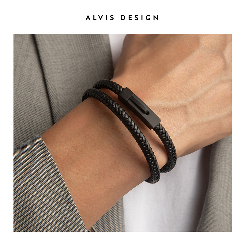 ALVIS 编织皮绳手链男士复古真皮质手绳高级感双圈手环简约送男友