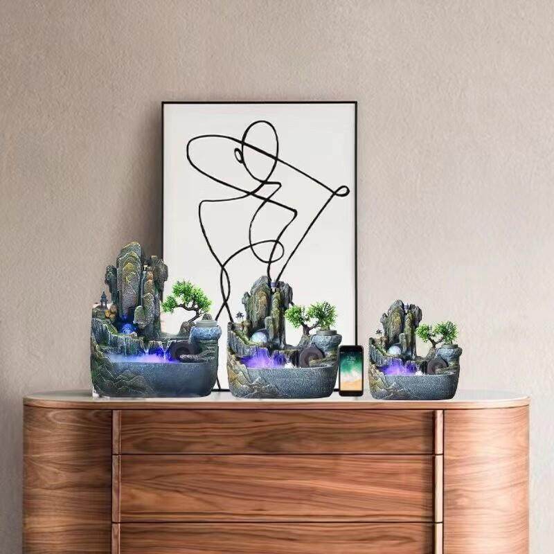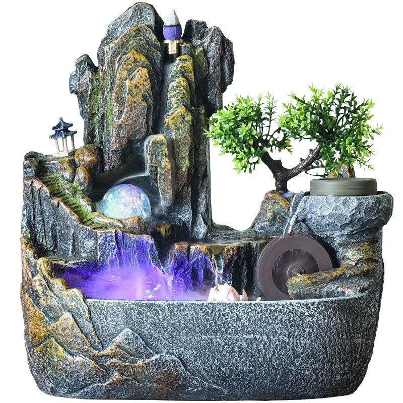 高山流水喷泉摆件客厅风水轮假山循环水景办公室加湿器倒流香鱼缸