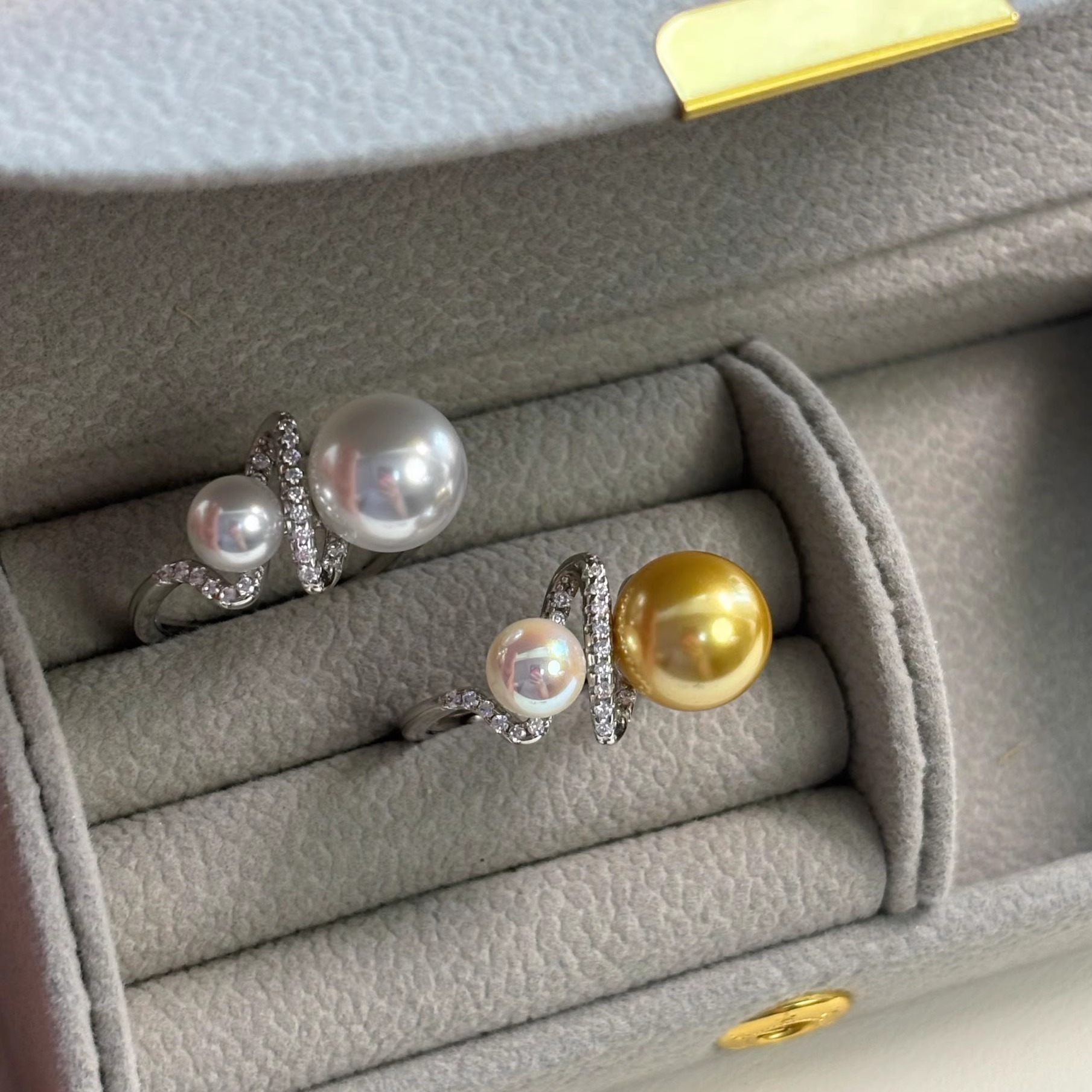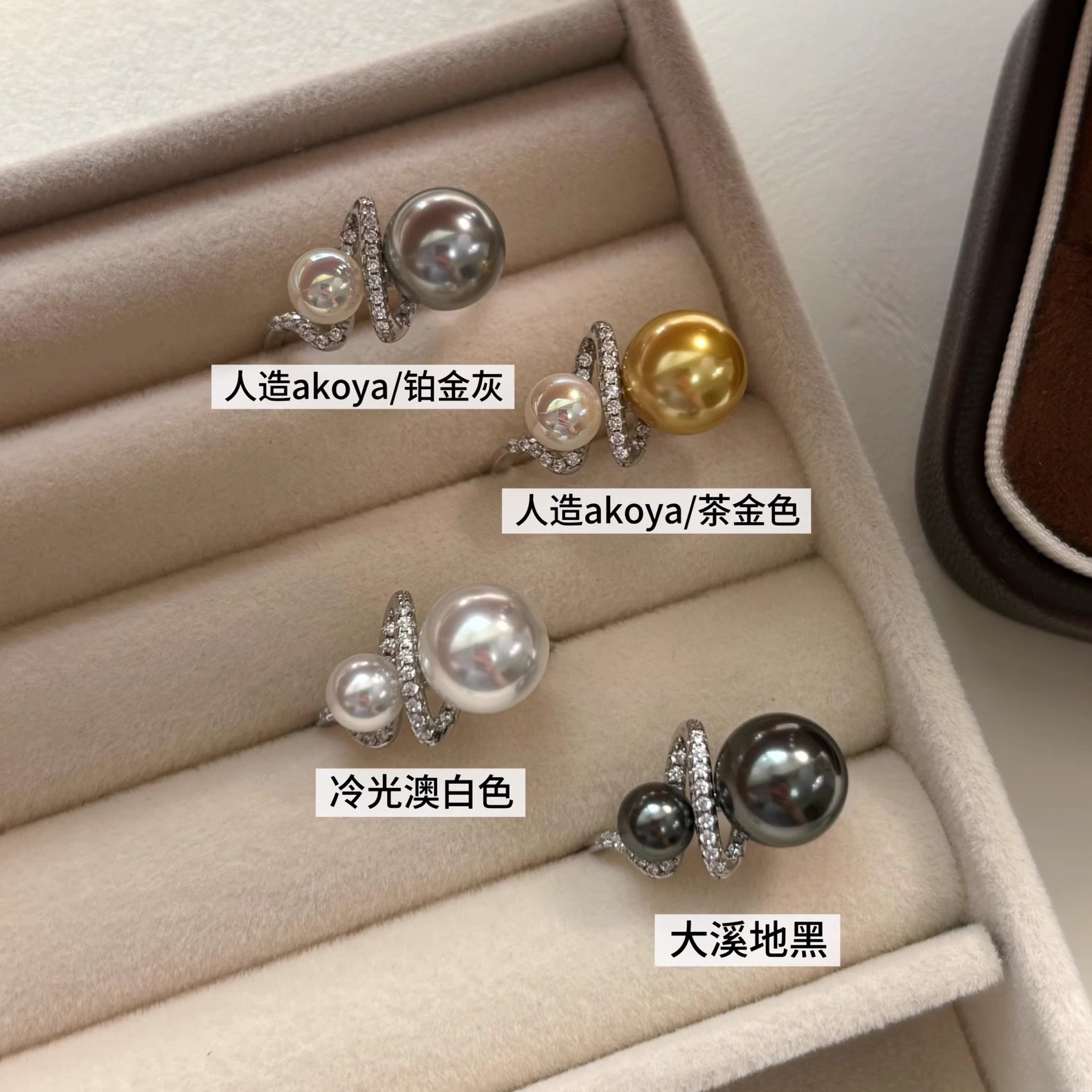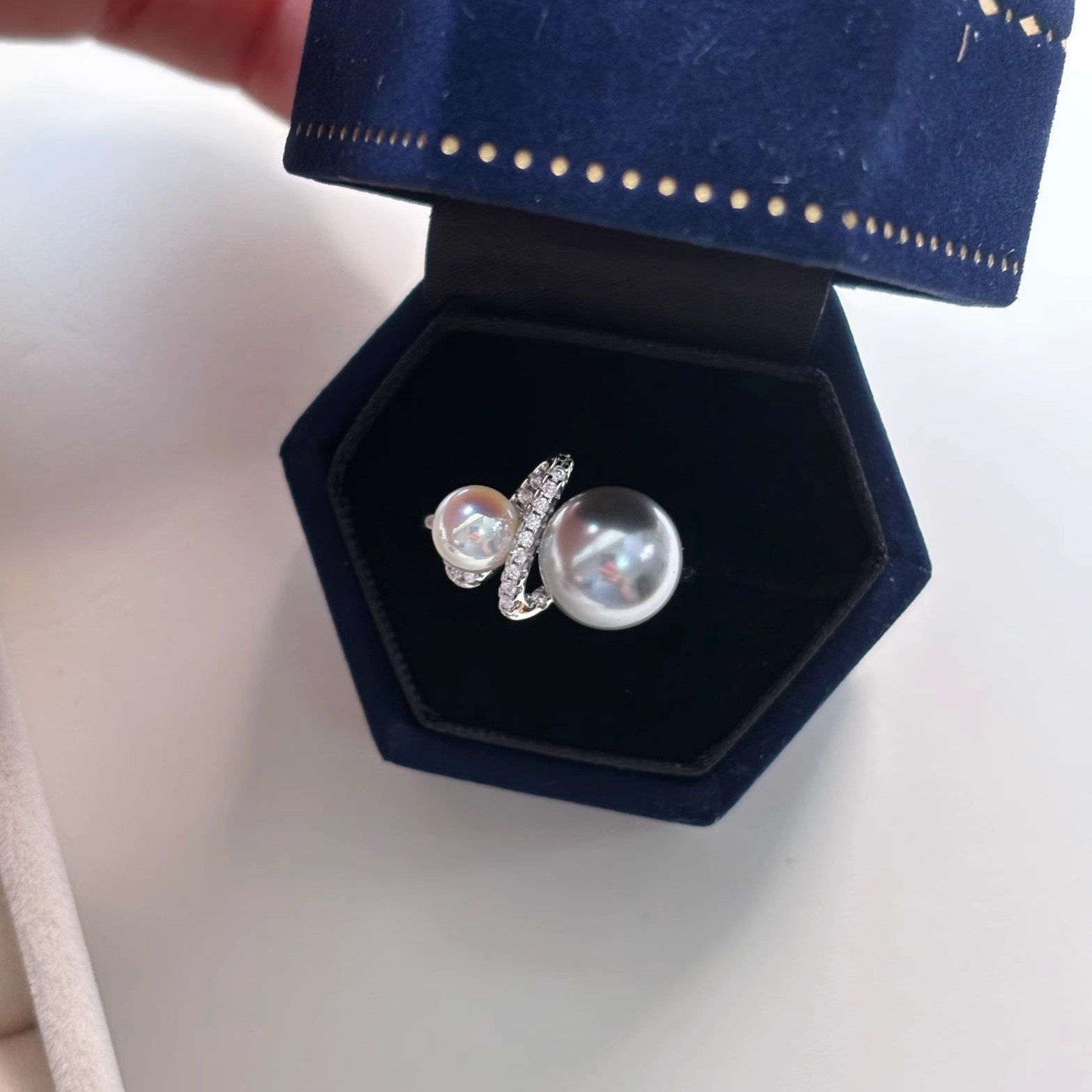 高级感人造澳白大溪地大小珍珠戒指s925纯银精致气质小众开口戒女