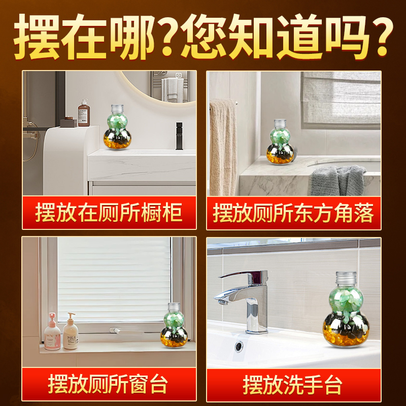 三色水晶葫芦瓶子解决卫生间厕所在正东震方专用洗手台柜子强木气