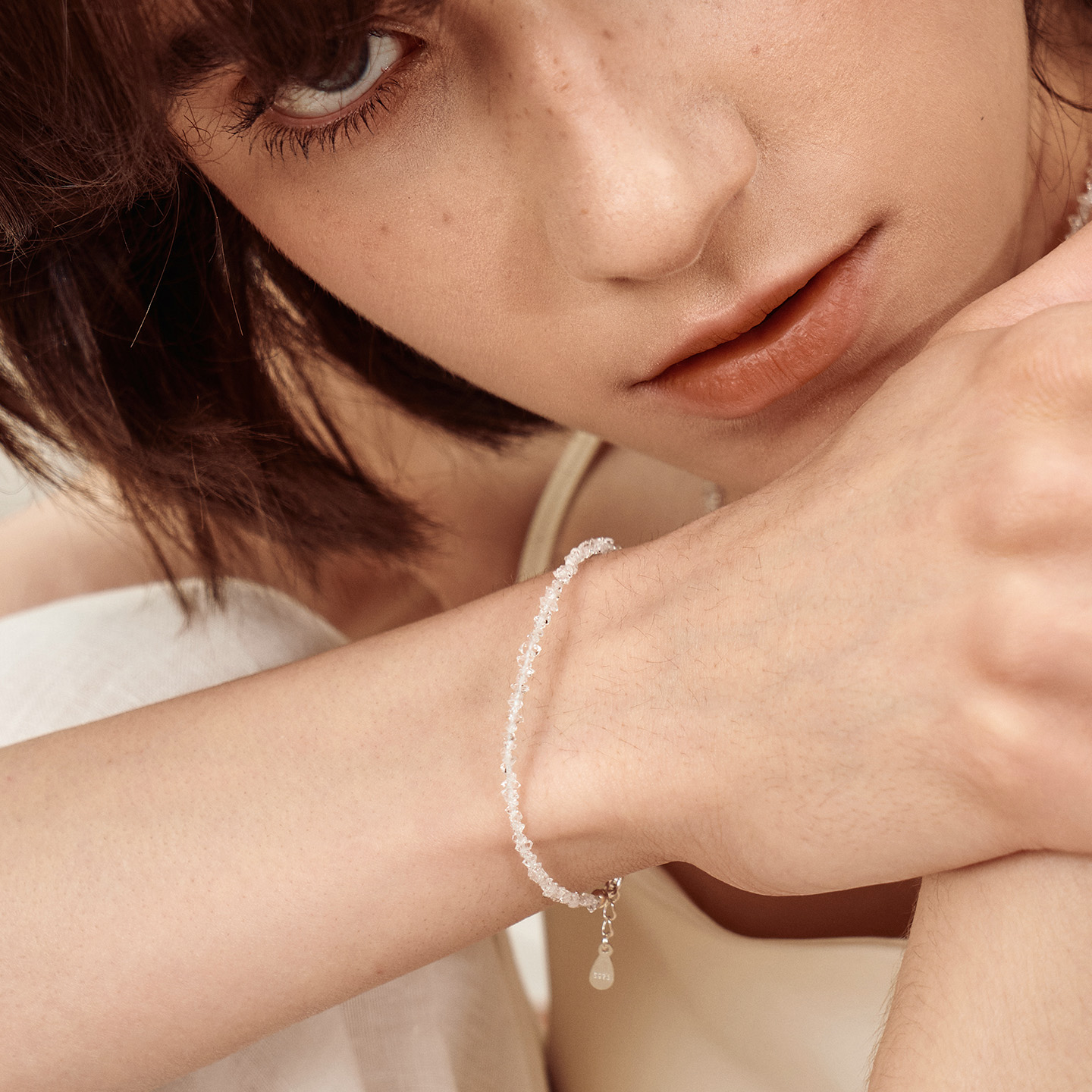 Rainy and Cloudy串珠3~4mm白水晶项链白水晶手链 不规则手串项链