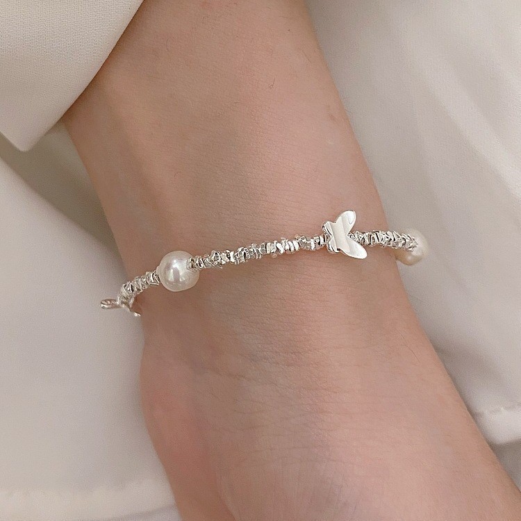 切割方块手链女时尚气质绿色仿珍珠S925镀银手环小众个性百搭手饰