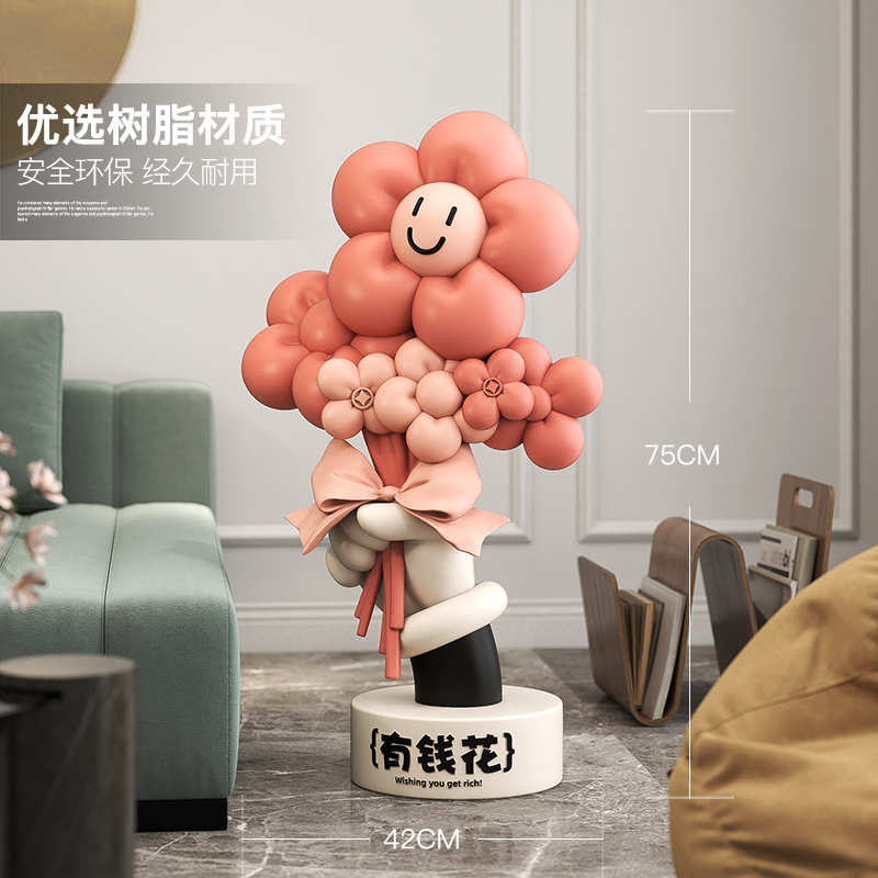 卡通有钱花大型落地摆件客厅电视柜创意装饰品潮流多巴胺开业礼物