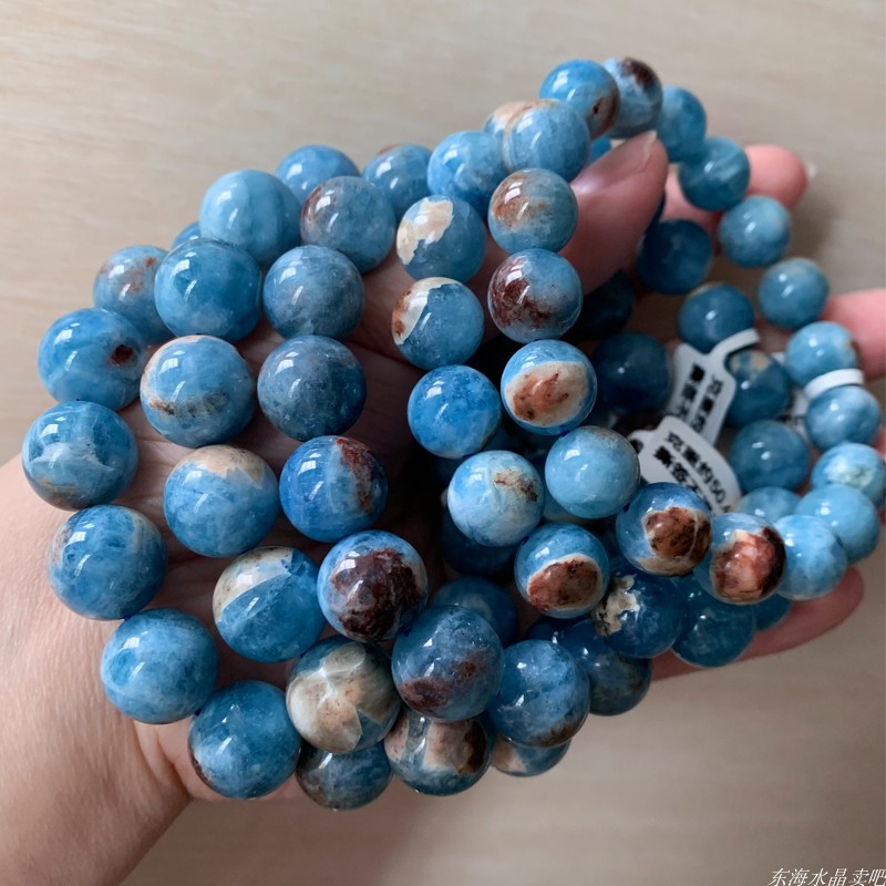 天然巴西岛屿海蓝宝手链蓝水晶满矿共生体手串一物一图饰品礼物女