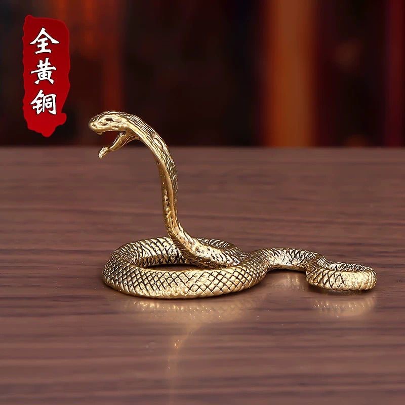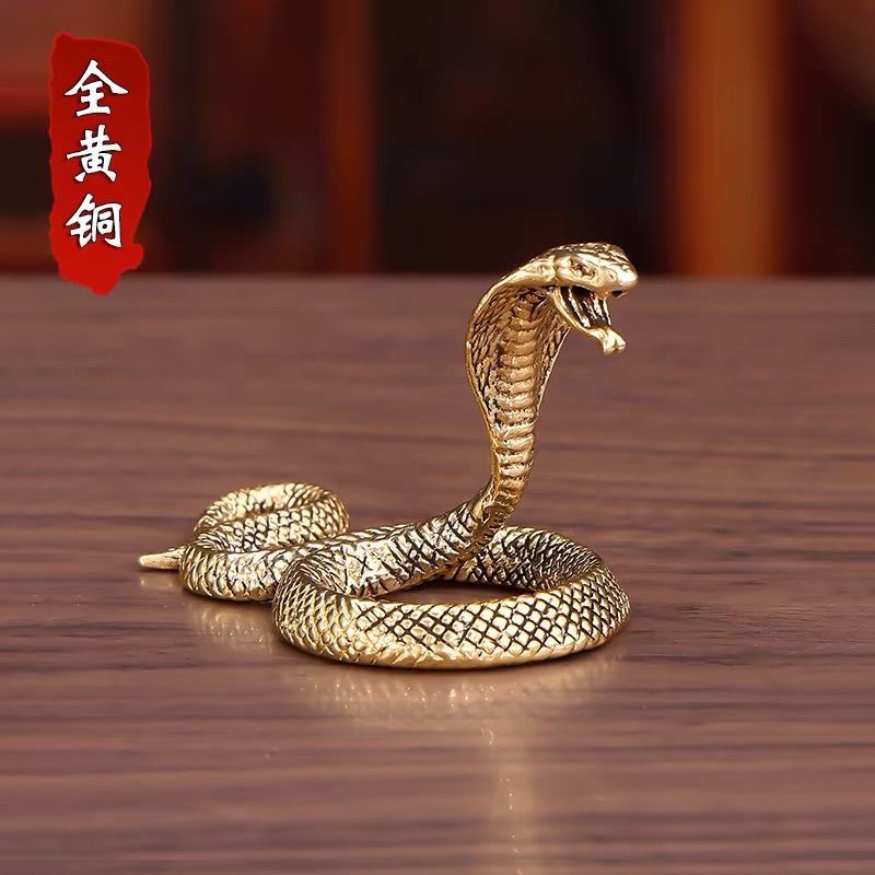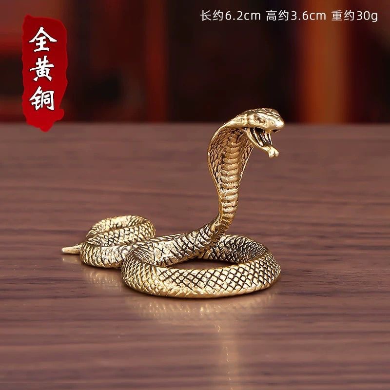 纯黄铜十二生肖蛇吉祥物茶宠小摆件眼镜蛇鱼缸造景手把件小蛇桌面
