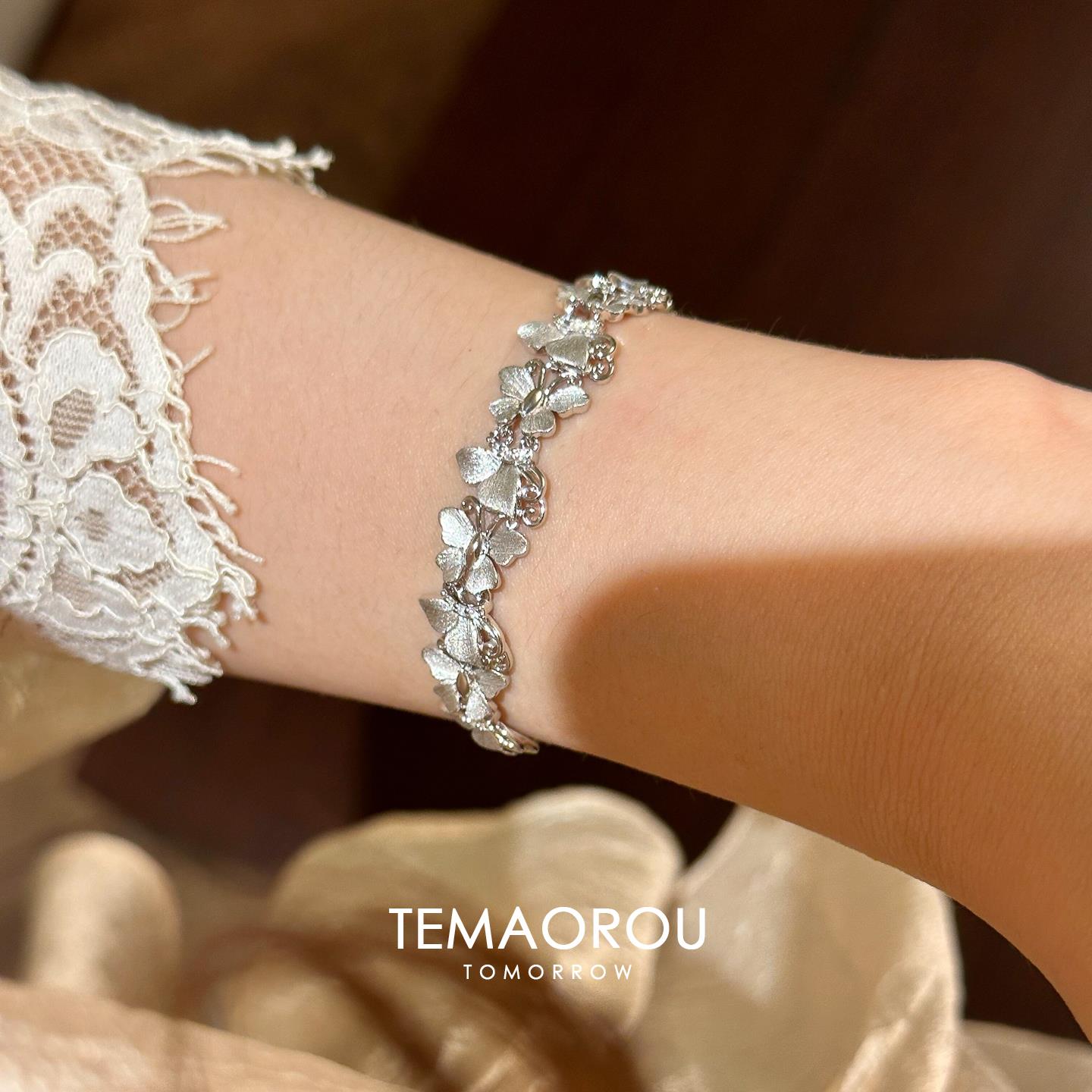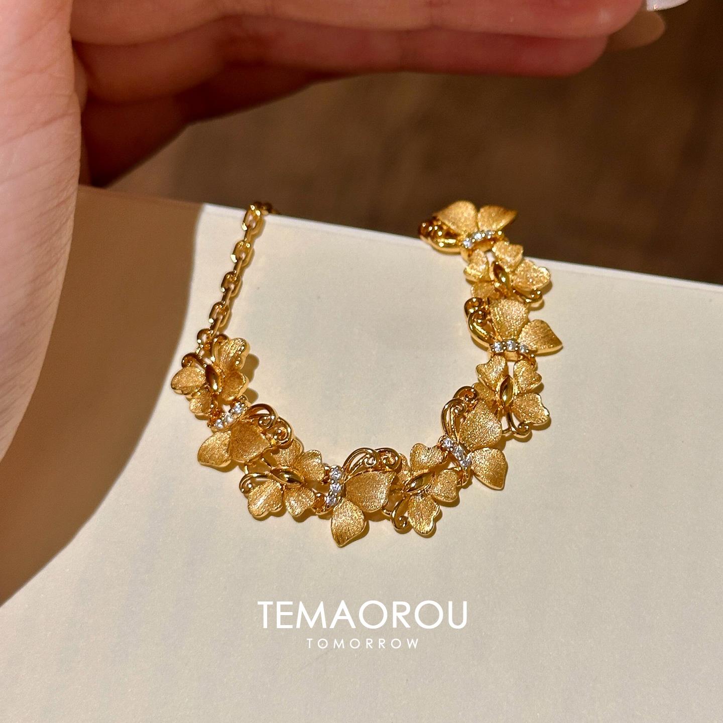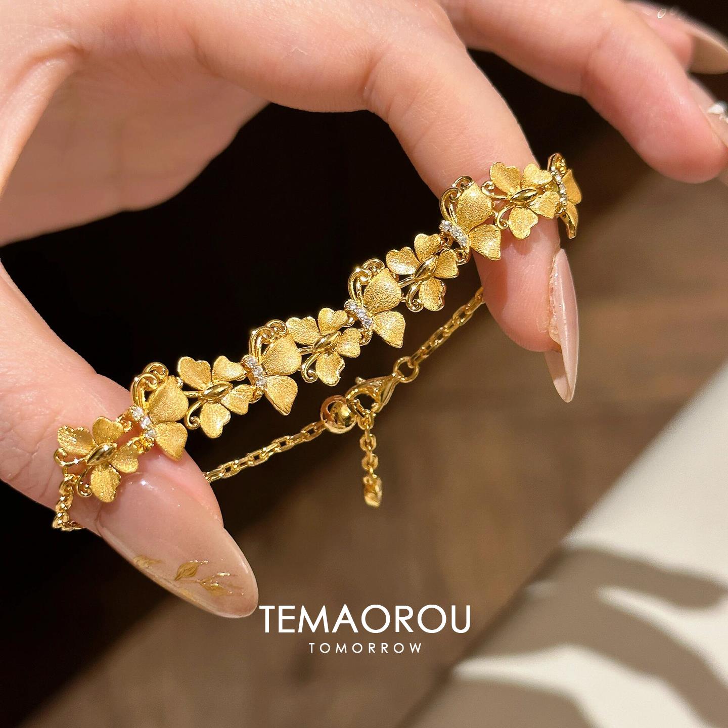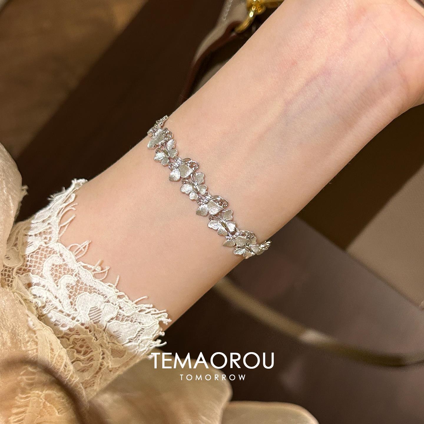 S925纯银拉丝金蝴蝶闪钻手链新中式轻奢复古小众高级时尚气质手环