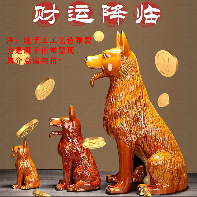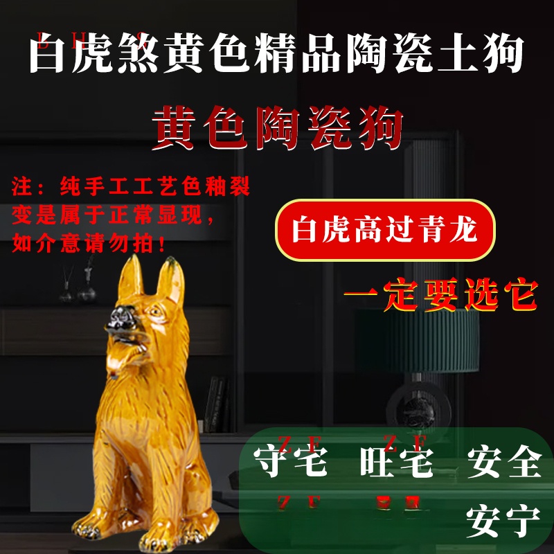 黄色陶瓷狗摆件房屋补角位白虎高青龙大门客厅办公室装饰取名起名