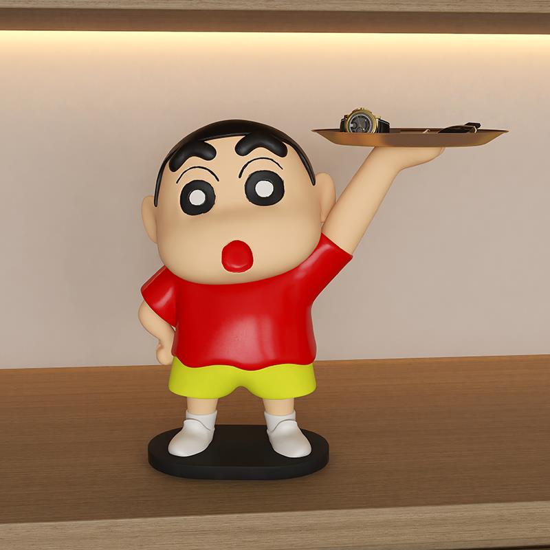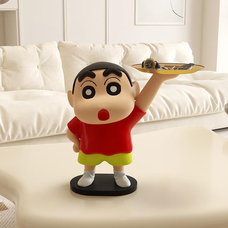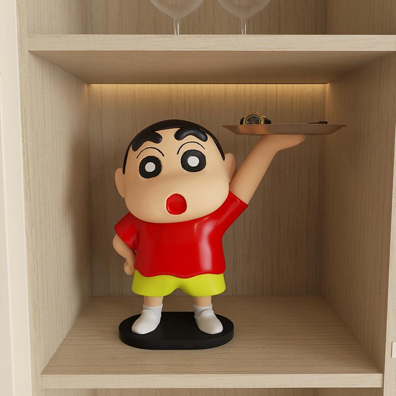 蜡笔小新客厅桌面玄关入门进门钥匙收纳托盘鞋柜装饰搬家礼物摆件