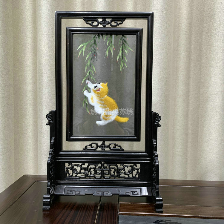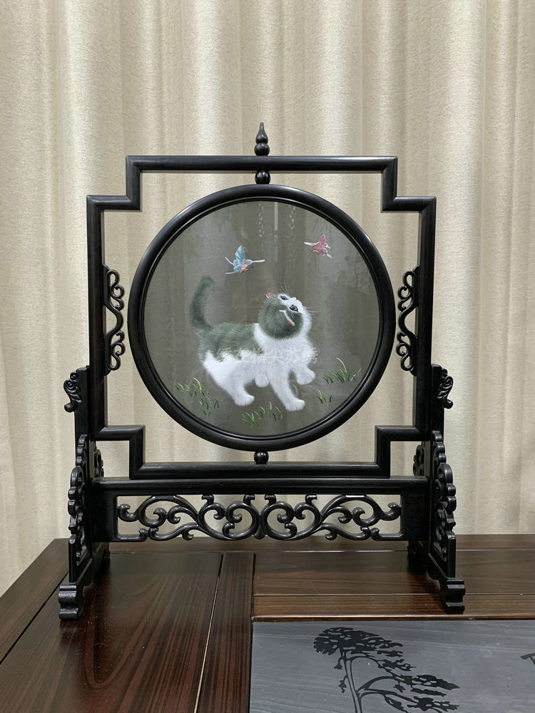 高端双面异色猫波斯猫非遗传承苏州特色精品苏绣纯手工摆件送老外