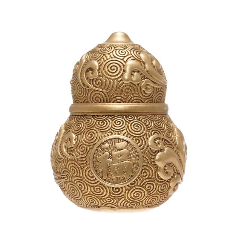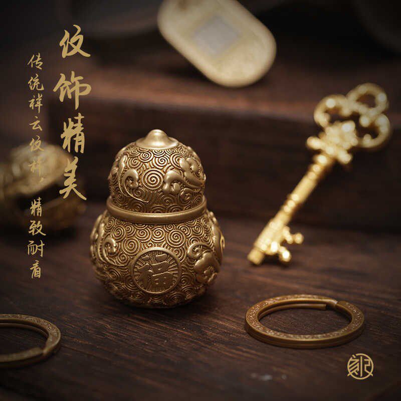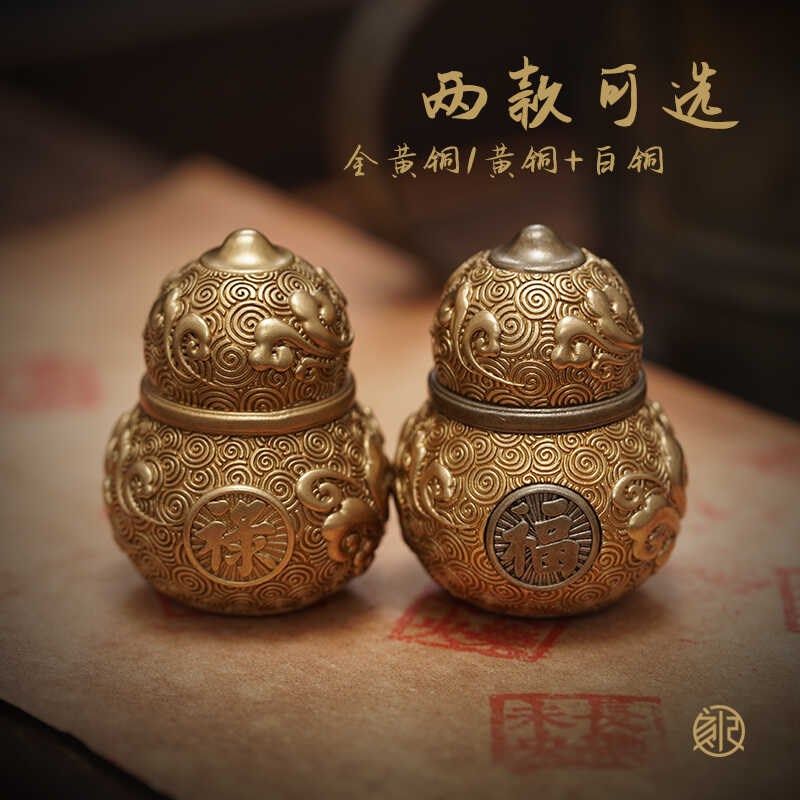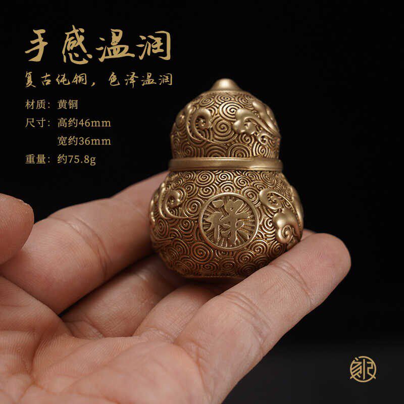 刻己福禄双全纯黄铜手把件祥云葫芦道系装饰摆件复古国风家居饰品