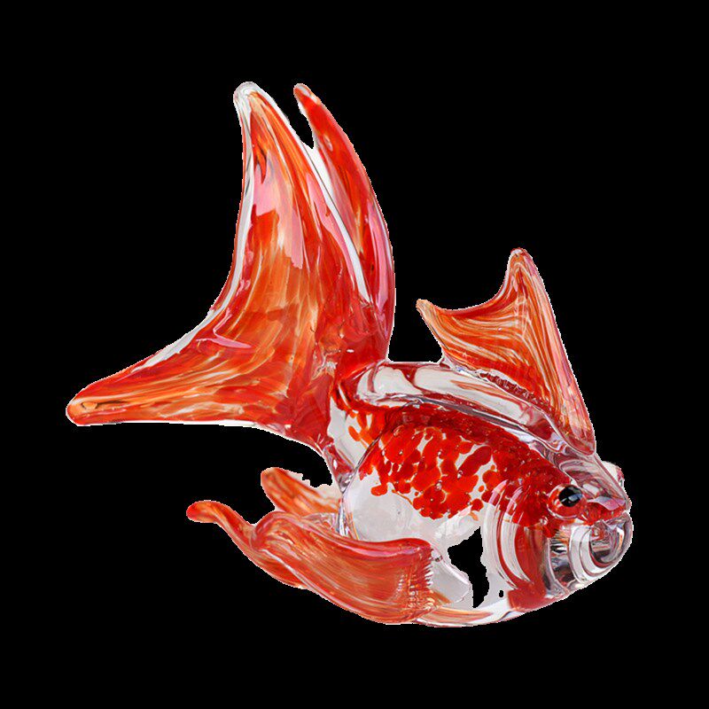 时尚创意红色琉璃玻璃金鱼鸿运当头摆件家居台面桌面装饰乔迁礼品