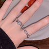 轻奢猪鼻子锆石戒指女小众设计高级感银色素圈戒指开口字母食指环