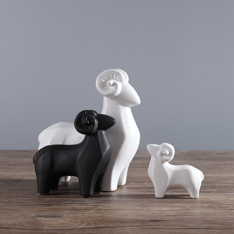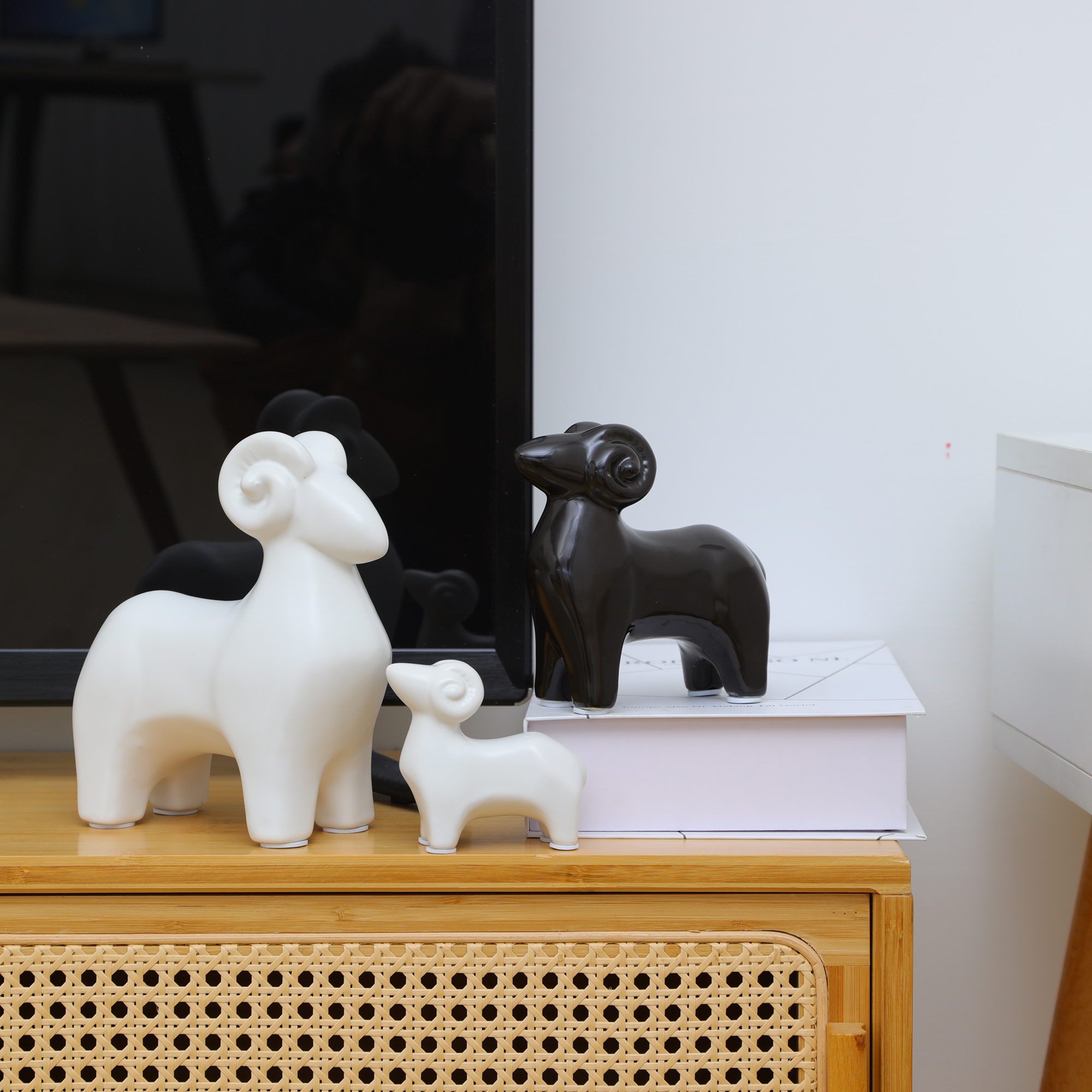 三羊开泰创意陶瓷生肖羊摆件化解吉祥物高级感家居客厅玄关工艺品