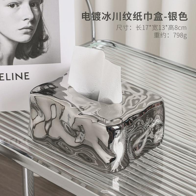 电镀银色纸巾盒客厅高档轻奢现代简约餐桌抽纸盒创意茶几装饰摆件