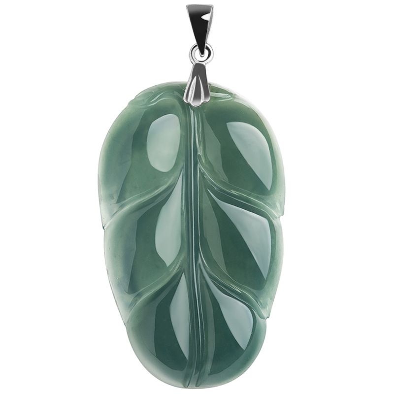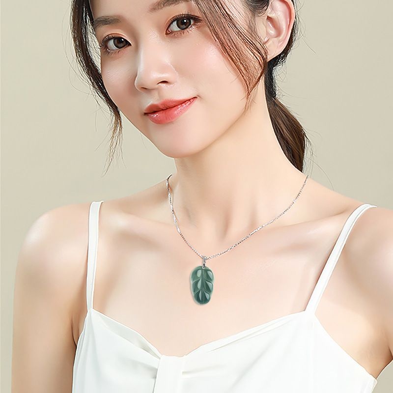925纯银天然翡翠玉A货树叶项链绿色冰种玉石挂件花件女款高级礼物