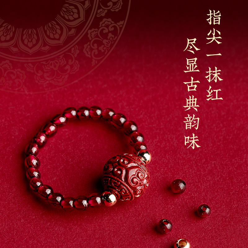 天然原矿朱砂貔貅戒指石榴石食指女款本命年弹力指环小众设计正品