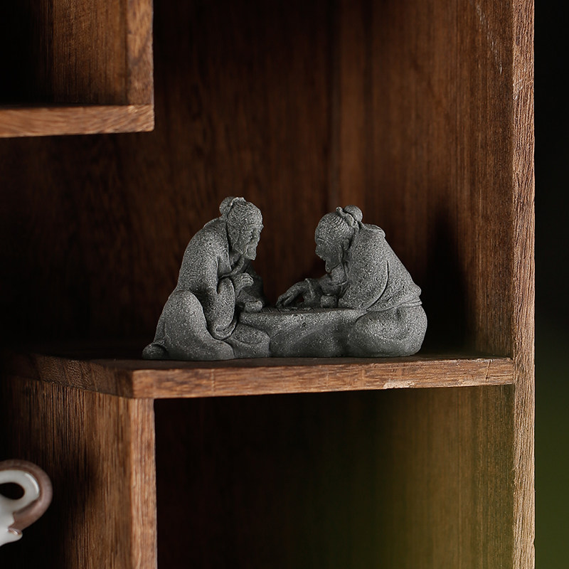 中式博弈仙翁茶宠摆件青砂石创意下棋老者鱼缸造景茶桌书房装饰品