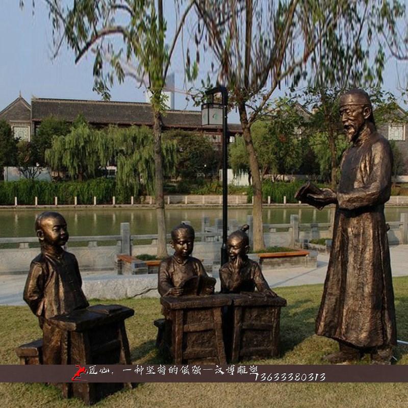 玻璃钢仿铜人物雕塑校园主题雕塑铜雕教师学生读书场景雕塑定制做