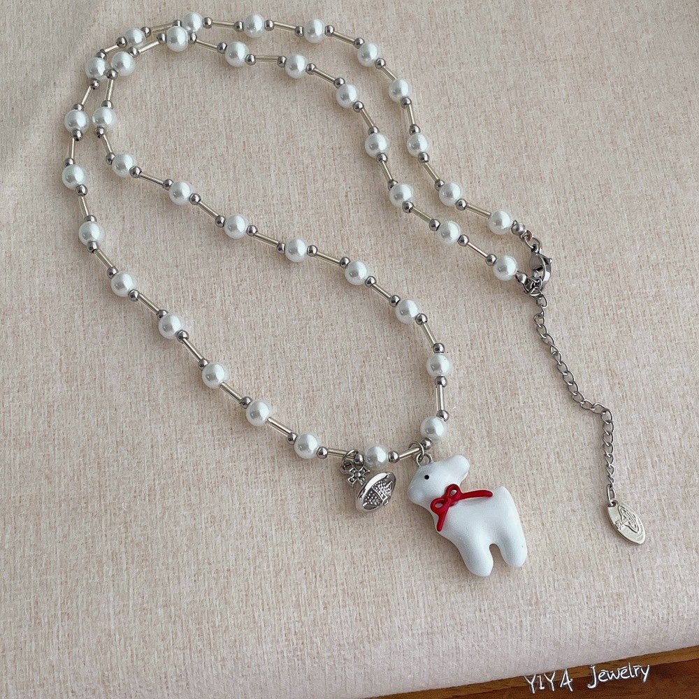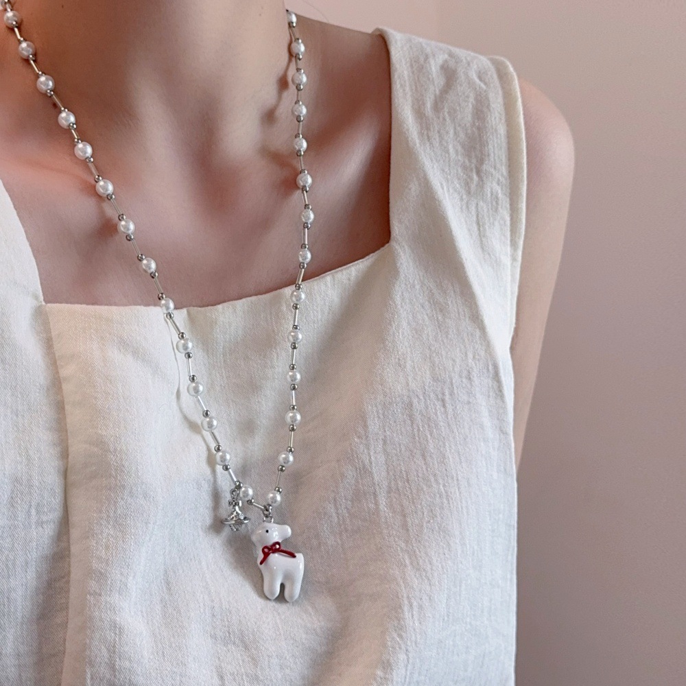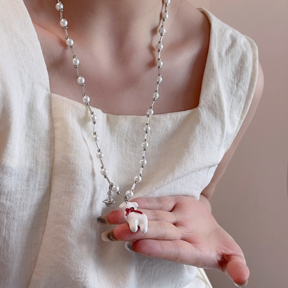 张泽禹同款梦中小鹿珍珠项链女小众高级感长款毛衣链甜美可爱配饰